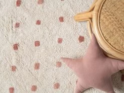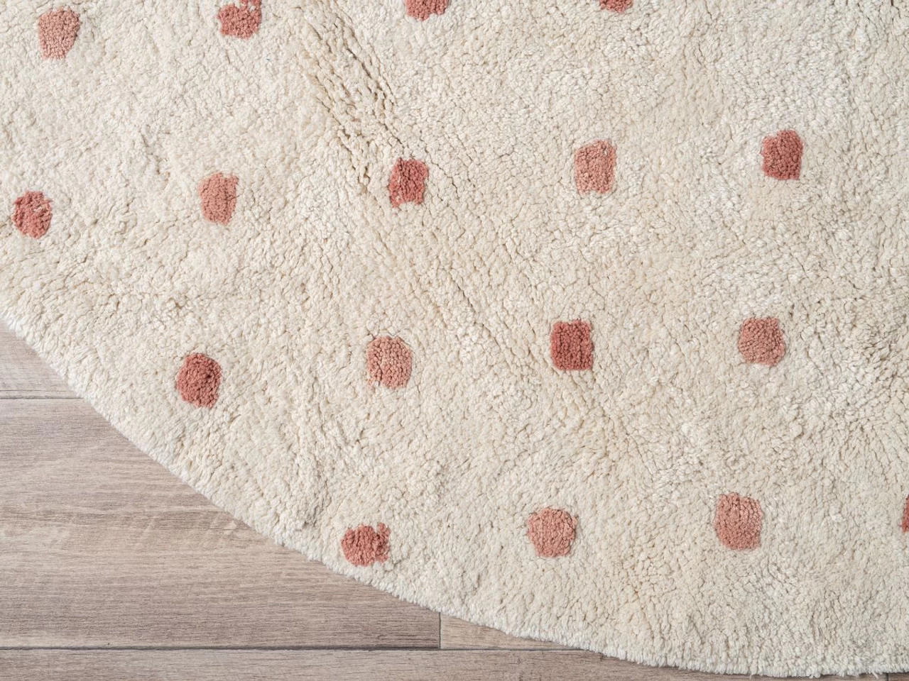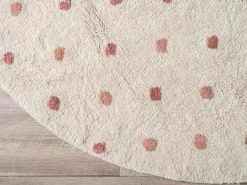 The Addy Round Spot Rug – Cream/Pink is a round rug with a plush feel underfoot and will add warm, neutral style to your home. Measuring 150cm x 150cm, this round cotton rug is stunning as the centrepiece of a living room, office, or bedroom and looks amazing placed under a dining table, armchair or rocking chair. We love the creamy base and varied spot pattern in different shades of pink for a warm, neutral style to make any space feel cosy.