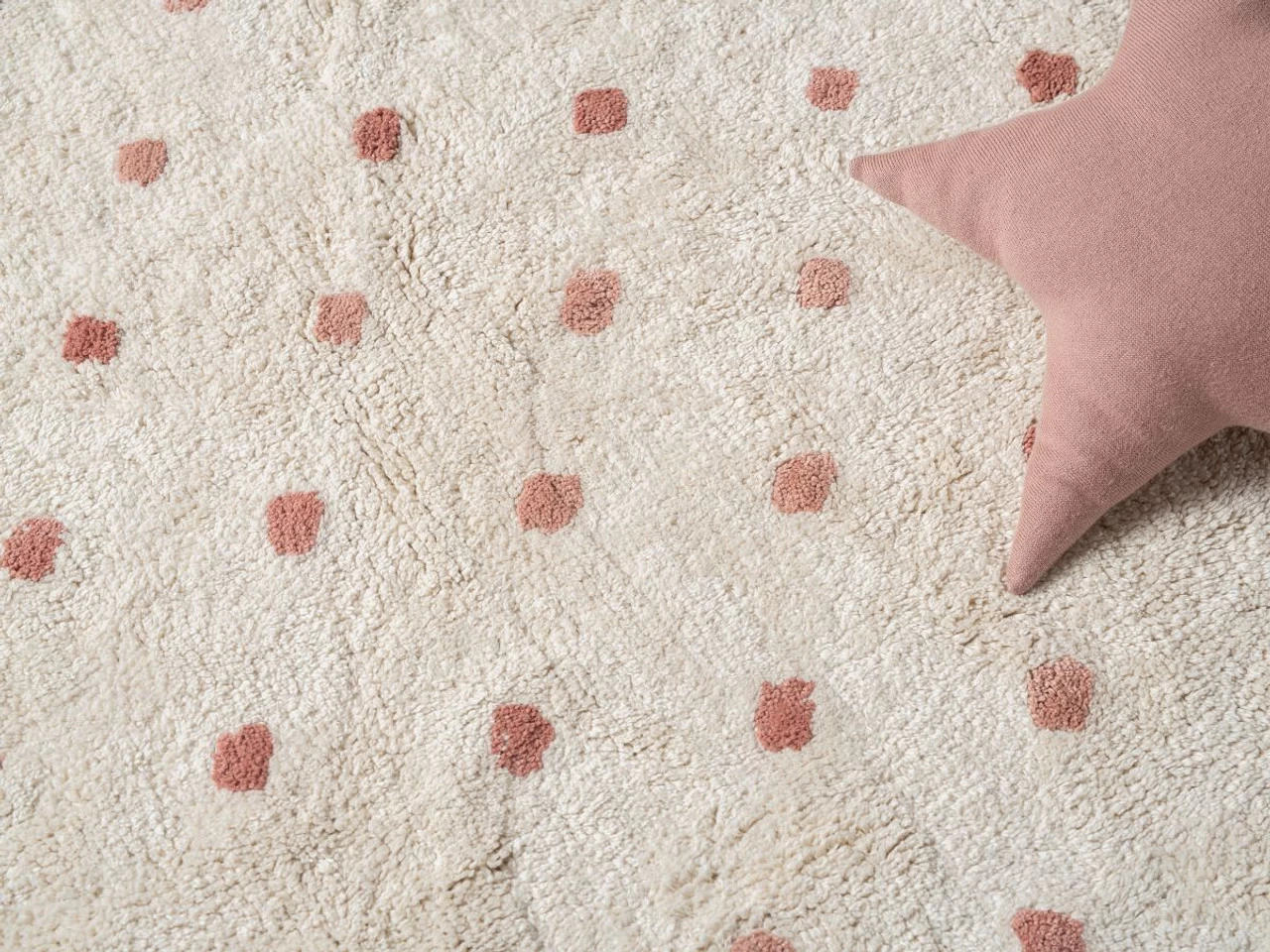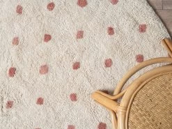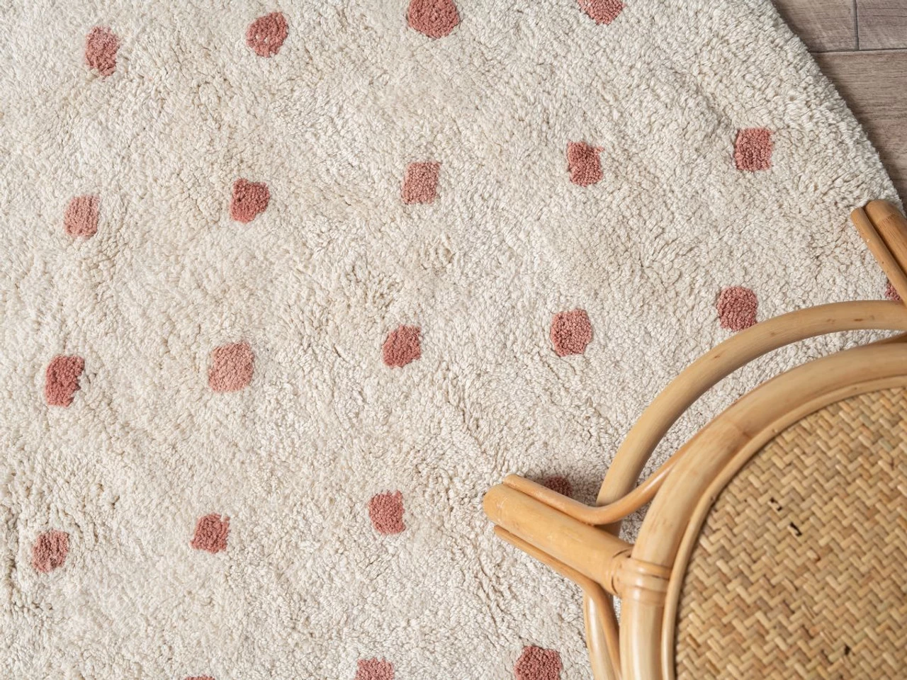 The Addy Round Spot Rug – Cream/Pink is a round rug with a plush feel underfoot and will add warm, neutral style to your home. Measuring 150cm x 150cm, this round cotton rug is stunning as the centrepiece of a living room, office, or bedroom and looks amazing placed under a dining table, armchair or rocking chair. The playful, dotted design also means this rug is perfect as a round kids spot rug and creates a comfortable space for kids to play and read in a children’s bedroom, playroom, or nursery. We love the creamy base and varied spot pattern in different shades of pink for a warm, neutral style to make any space feel cosy.