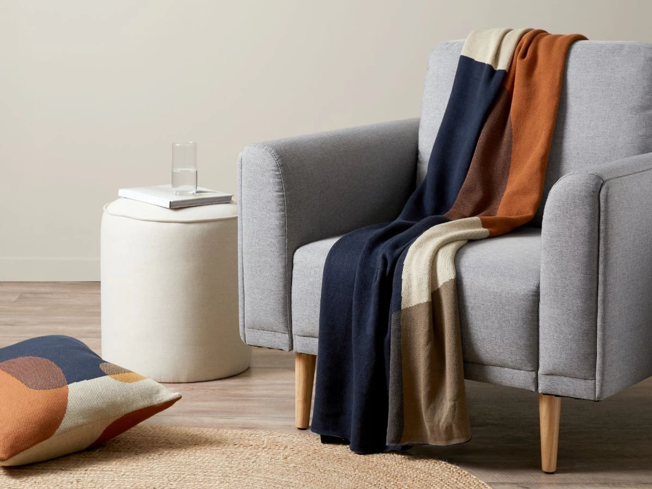 The Amarose Abstract Knit Throw – Navy/Rust is a dreamy, knitted throw to add soft comfort to your home. Made from cotton, this throw rug has a cosy, knit design, and features an art -inspired, abstract design which is perfect for adding subtle pattern, colour, and texture onto a bed, couch, sofa, or armchair. We love the pairing of seasonal navy, rust, and complimentary neutral colours which makes this a great styling throw rug.