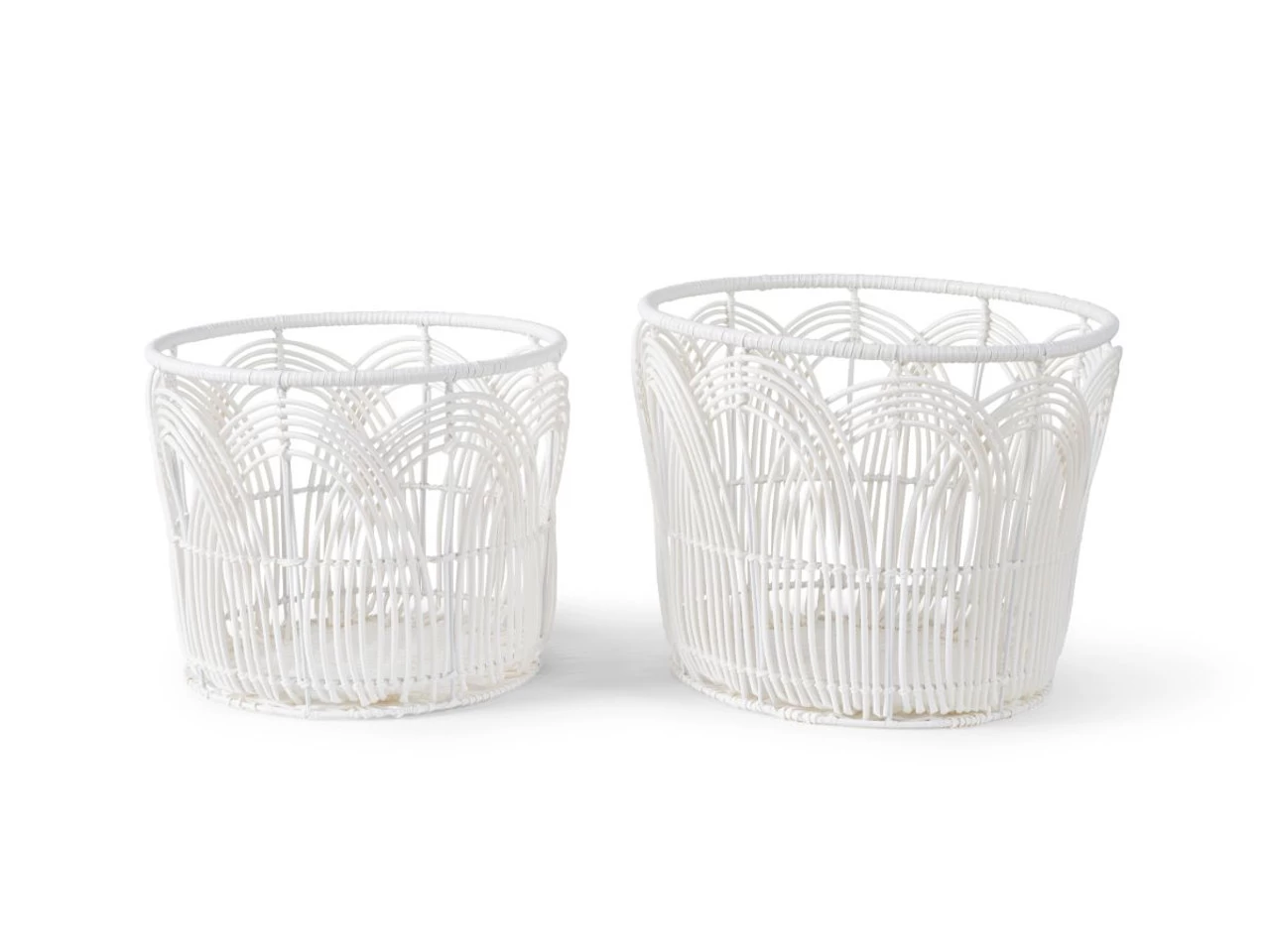 The Andrea Rattan Look Basket – Set of 2 – White is a simple, yet stunning set of home storage baskets. Perfect for just about any area of your home, these baskets can be used to store shoes, throws, toys, linen, or even use one a wastepaper basket. Sold as a pair, each set contains one medium basket and one large basket, both offer versatile storage options. Handcrafted, this basket set has a textured body with lovely arch patterns and detailing and all finished in a fresh, white.