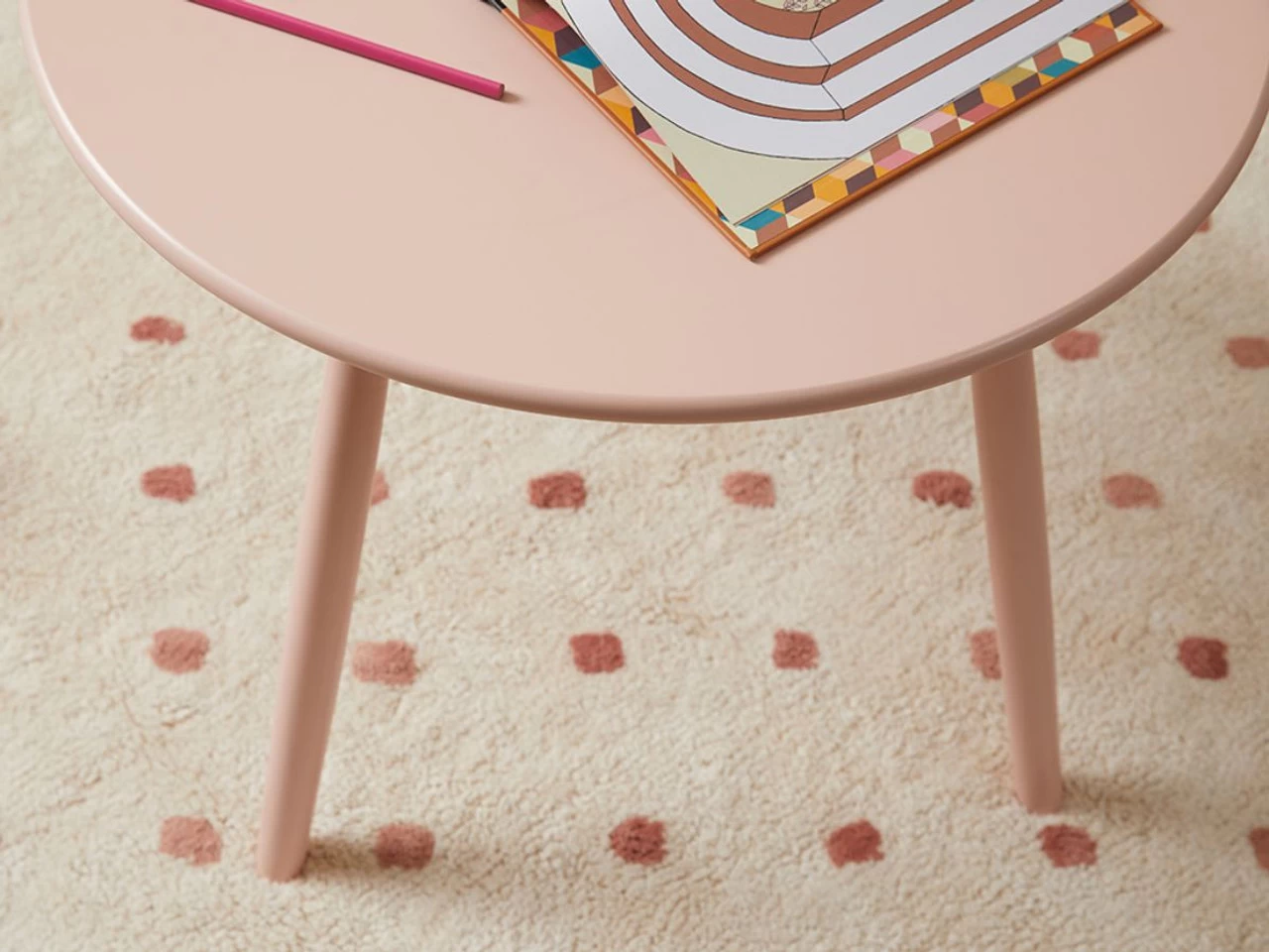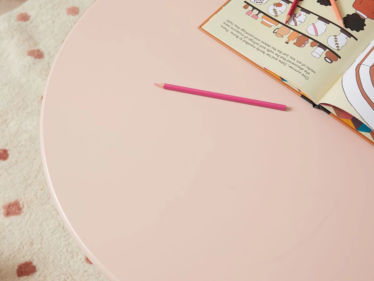 The Annie Kids Round Table – Pink is a round table for kids aged 3 years and older. Giving your child a sense of independence, this pink kids table is perfect for your child to use throughout the day as they colour, paint, cut, craft, read, write, and enjoy mealtimes. Add to a living room, dining space, kid’s bedroom, or child’s play area to create a dedicated space for child to play and create with no restrictions (or no fears of marking more precious furniture like dining tables). Pair this table with a set of kid’s chairs, like the matching Annie Kids Chairs, to create a kids table and chair set for your little ones. This round kid’s table measures at 50cm high, giving kids plenty of leg room and a spacious surface to work on. The smooth painted finish is safe for children and complies with Australia safety standards. We love the soft pink colourway for a fun, playful style any boy or girl will adore.