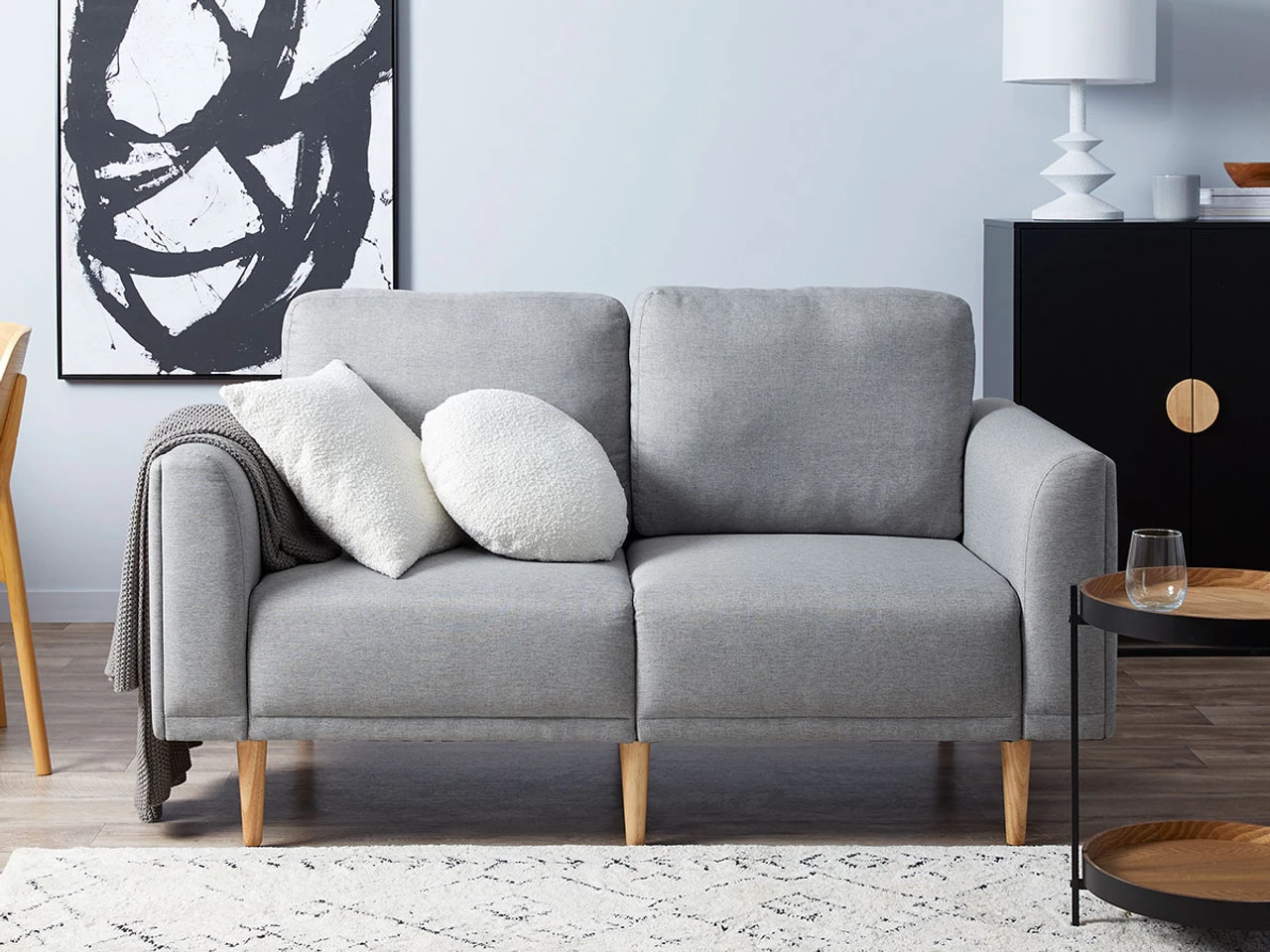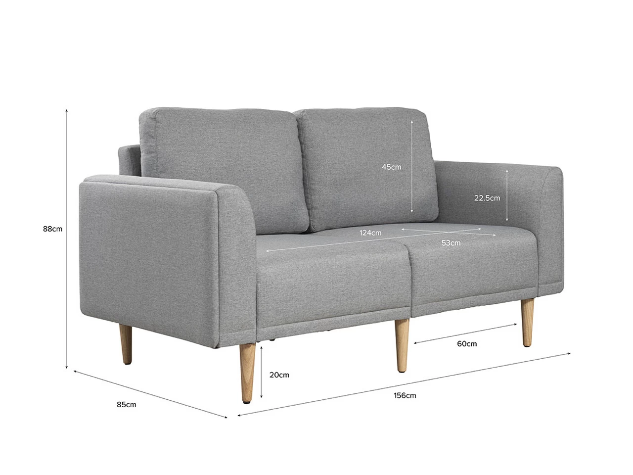 Cosy up in comfort and style with the Ashford 2 Seater Sofa – Grey. The perfect 2-seater couch for a living room, lounge room or other seating area, you’ll love the easy comfort this sofa brings to a room. The perfect spot to sit and relax, this sofa will easily seat two people. Padded armrests and soft back cushions provide support to ensure a super comfortable sitting position for all ages. A more compact design than our Ashford 3 Seater Sofa, this is the perfect option for smaller spaces such as apartments, studios or office.