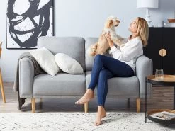 Incredibly durable and built for everyday use, this sofa is ideal for casual lounging, snuggling, reading or relaxing. To keep your sofa looking good, we recommend vacuuming regularly on low suction and spot cleaning any liquid/food spills immediately. Easy to assemble, watch our assembly video here to learn how it goes from flat pack to comfy sofa! Cosy up and sit back in comfort with the Ashford 2 Seater Sofa – Grey.