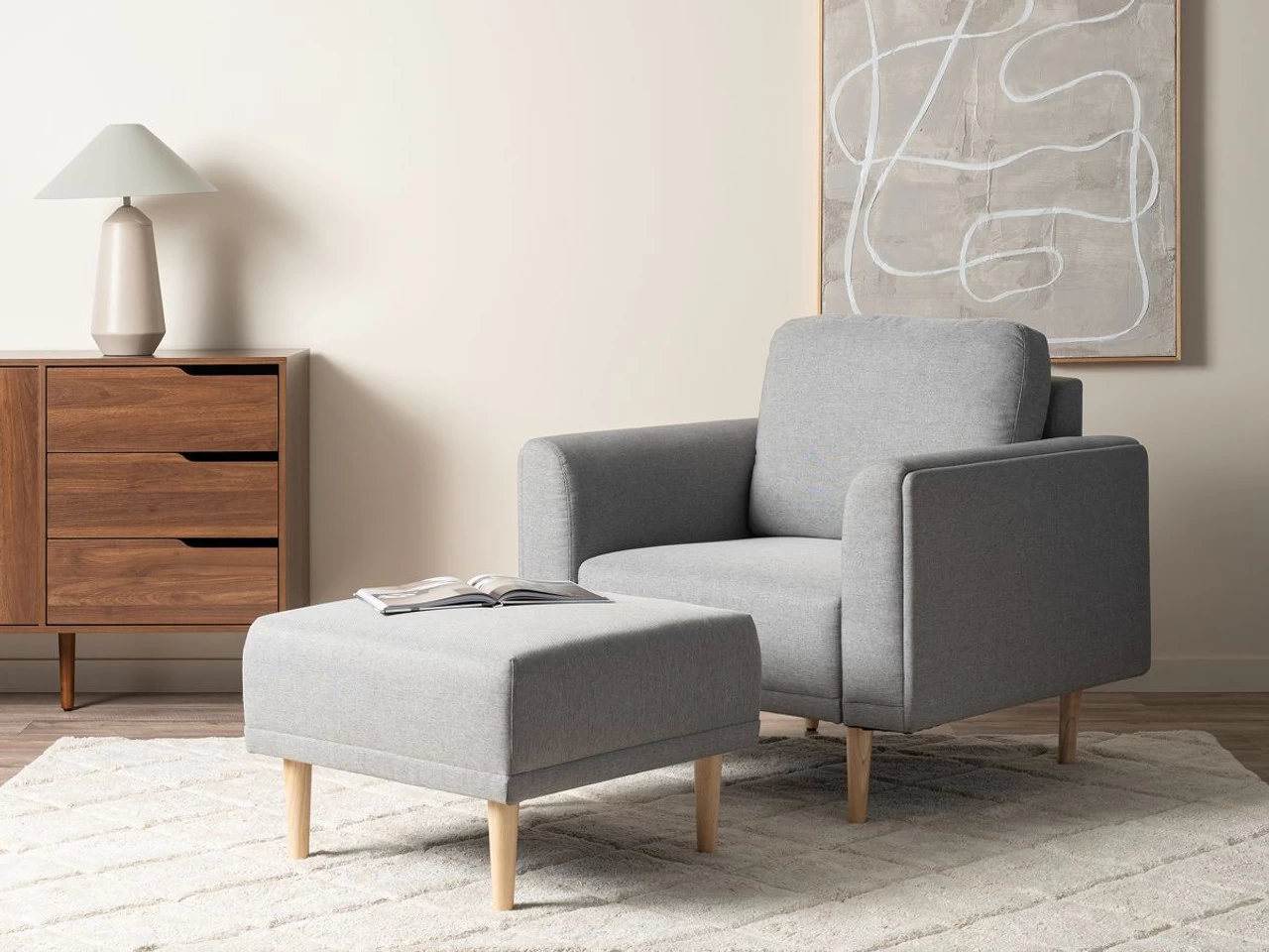 Soft and fresh the grey upholstered fabric is the perfect choice for those who want comfort, style and easy care. Sure to give your seating area a modern makeover, this armchair will suit most interior styles. Extend the comfort of your chair by pairing one with the Ashford Ottoman. This large, square ottoman is the perfect height and style to really put your feet up. Extend this exceptional style of the Ashford by matching your armchair with the Ashford Sofa 2 or 3 Seater for a complete lounge room suite.