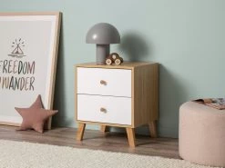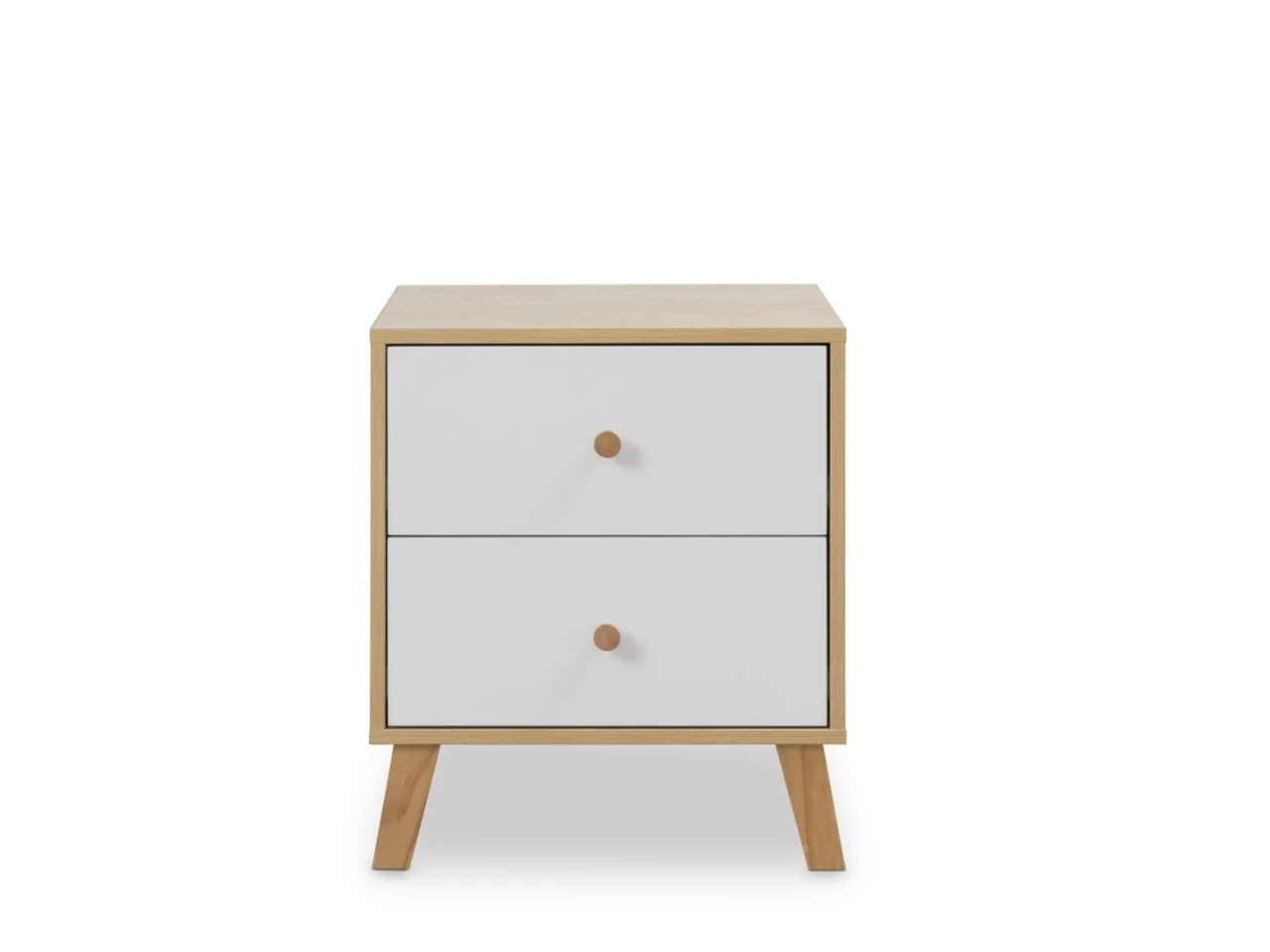 Add chic, everyday style to your bedroom with the Aspen Bedside Table. With a compact shape, this side table celebrates modern design and is an ideal bedside table for the master bedroom, kids’ bedroom and more. Two sliding drawers give you ample space for bedroom storage without the clutter. Keep clothes, books and night-time essentials stored for when they’re needed the most and use the surface to hold a lamp and décor for added style. The wood look frame explores varying tones and woodgrains which adds a warm element to any room and is perfectly paired with the fresh, white finish of the drawer fronts. Each drawer has a round, wooden handle which gives this bedside table a classic, dresser style. Wonderfully neutral, you’ll love how easy this side table perfectly complements a range of bedroom and home interior styles.