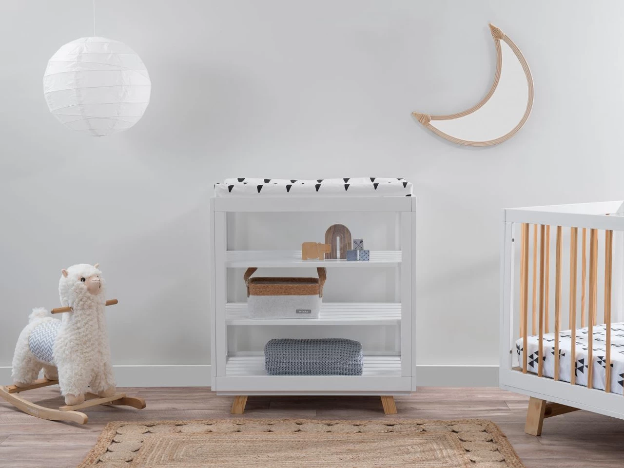 The Aspen Change Table – White/Natural makes changing your baby’s nappy not only practical, but super stylish. Designed specifically to fit our Change Mat (purchased separately), this Change Table features a wide tray on top with three shelves underneath for all the essential storage – like nappies, wipes and clothes. Perfect for parents who don’t have the space, this changing table gives you the versatility and practicality without taking up much room. Available in a stunning white and natural colour combination, it matches the rest of the Aspen collection – including the Aspen Cot, so you can create your dream nursery in one stop shopping.