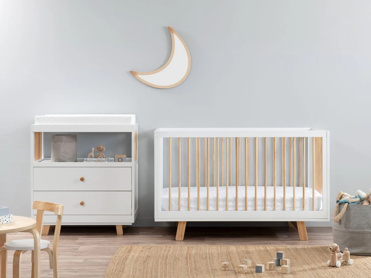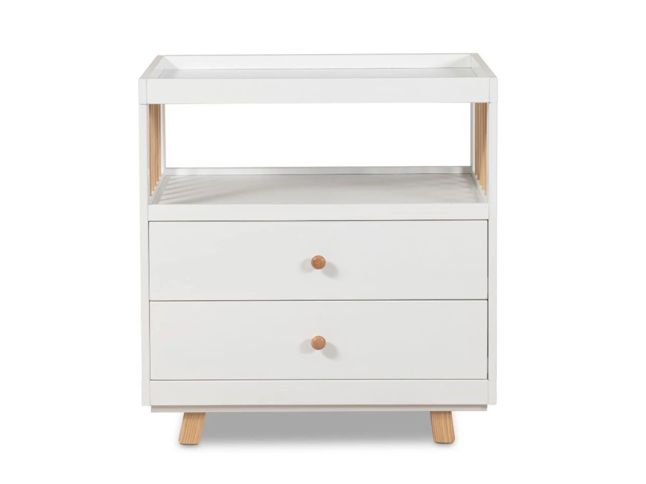 This on-trend changing table features a two-toned designed in white and natural for a chic and modern change table that will easily match to other décor in your nursery. Perfectly paired with our popular Aspen Cot – White/Natural, if you love this look, set up your dream nursery from the rest of the Aspen collection. Create a modern changing station with plenty of storage using the Aspen Change Table with Drawers.