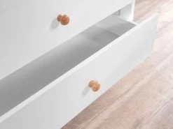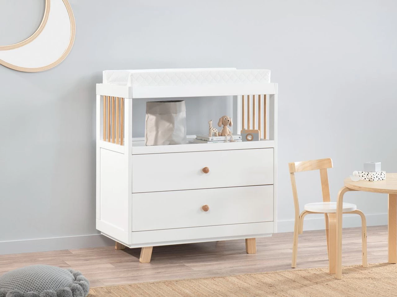 The Aspen Change Table with Drawers – White/Natural ensures you can easily change your baby’s nappy with plenty of practical storage within arm’s reach. This nursery change table features a wide tray on top with a shelf and two spacious, sliding drawers underneath for storing all the essentials like nappies, wipes, swaddles, jumpsuits and more. Ideal for parents who want to save space, you can use this unit in the nursery both as a storage dresser and changing station. Available in a stunning white/natural, it matches the rest of the Aspen collection, including the popular Aspen Cot – White/Natural, so you can create your dream nursery in one stop shopping!