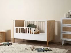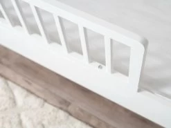 Transform your cot into a safe, junior bed with the Aspiring Cot Toddler Bed Half Frame – White. This toddler guard or half frame panel is a great way to add a protective rail to help keep your little one safe and secure as they sleep the night away. To install simply remove the side panel of your Mocka Aspiring Cot and attach this toddler half frame side in its place. With the same painted white finish as the Aspiring range, the adaption is flawless and continues the gorgeous look of your child’s nursery.