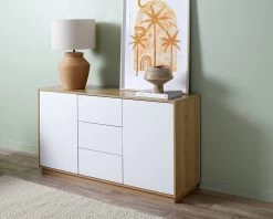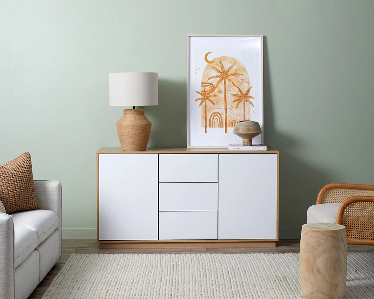 The Avoca Buffet is the perfect storage unit to channel coastal vibes into your living spaces. The white and natural finishes effortlessly blend with the sleek, modern outline, for an effortless style that is light and airy. It has plenty of storage with three sliding drawers and two cupboards, so you can keep your home organised and clutter-free. It is an ideal design as a sideboard in a dining room or a storage cabinet in the living area or home office. And let’s not forget the top surface, where you can showcase your personal style with your favourite decorative accents. At an affordable price-point, it offers amazing value and can be matched back with the rest of the Avoca range for a modern coastal look throughout your entire home.