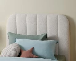 Add cosy, dreamy style to your kid’s bedroom with the Belinda Boucle Teddy King Single Bed – Ivory. It’s soft, teddy style boucle fabric is wonderfully on-trend and is the perfect comforting addition to your child’s bedroom. Stunning in a chic ivory, this kid’s bed is classic and neutral for a colourway that’ll go with anything. Featuring a padded headboard with curved corners and ribbed detail, it creates a textured feature against the wall and is the perfect backdrop for comfy bed linens, quilts, and cushions. It’s also a great spot for kids to casually lounge and use as backing when reading before bed or during their free time. Well-constructed, your child is supported with a strong, plywood slat base for a comfortable night’s sleep. Perfect for any child’s bedroom, this ivory boucle king single bed gives any space a dreamy appearance.