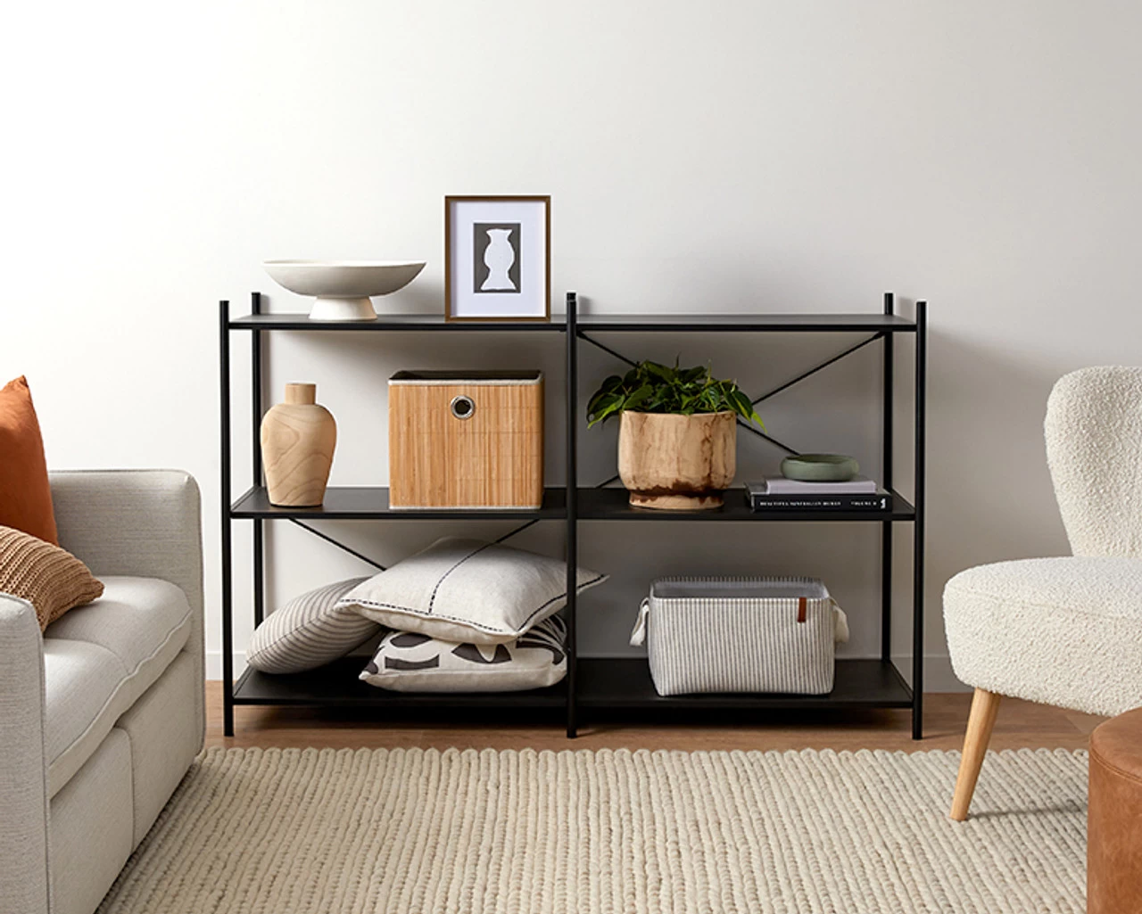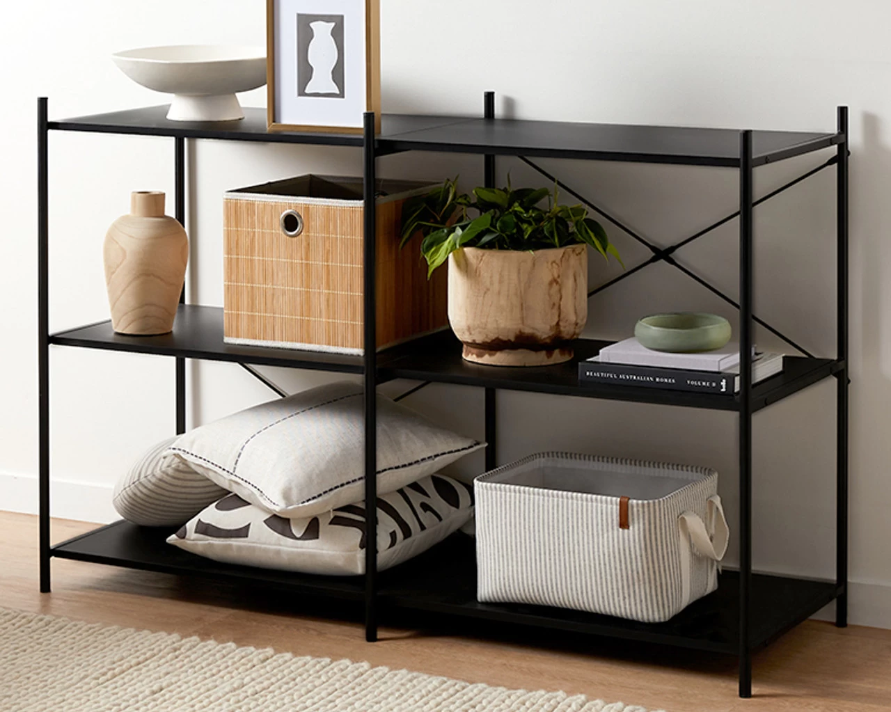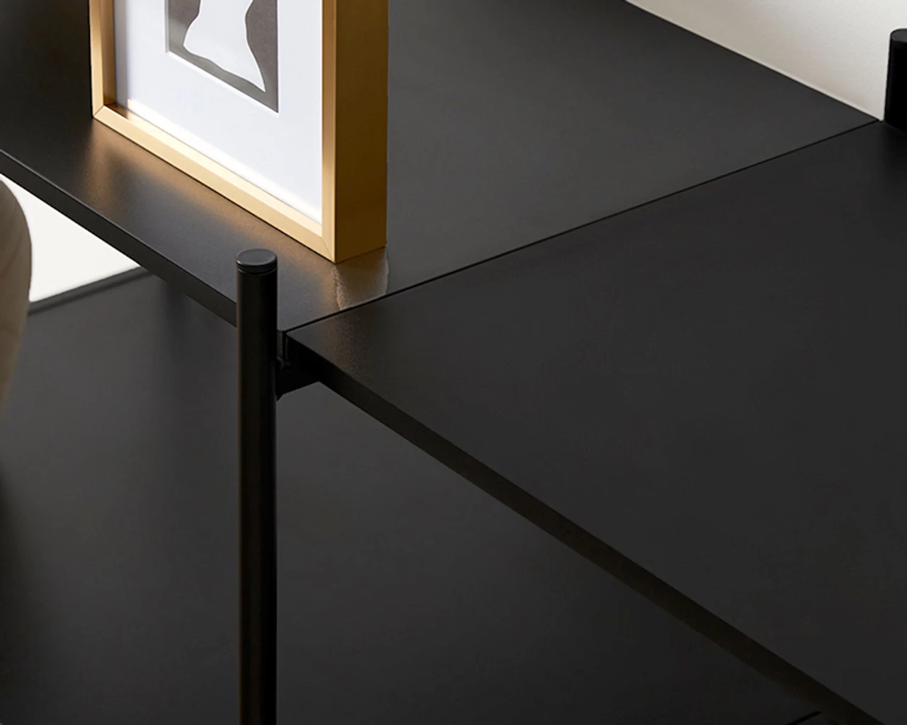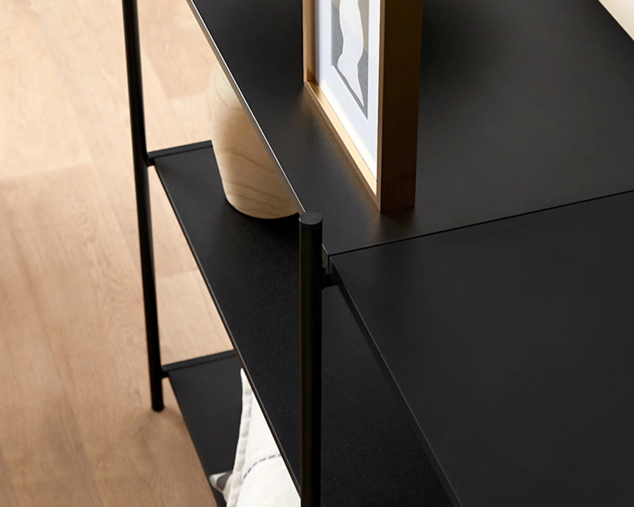 The Bentley Low Shelf is a sleek and stylish low-line shelving unit perfect for any modern home. Designed with a contemporary all-black finish, it makes your home and décor stand out. The tubular, powder-coated metal frame is not only durable and sturdy but also right on-trend, adding a touch of sophistication to your space. Perfect in your hallway, living space or home office, the three shelves are ideal storage for books, décor, plants and more. And the best part? It has a completely modular design, meaning you can customize your own configuration of shelves to suit your needs and space with the rest of the Bentley range.