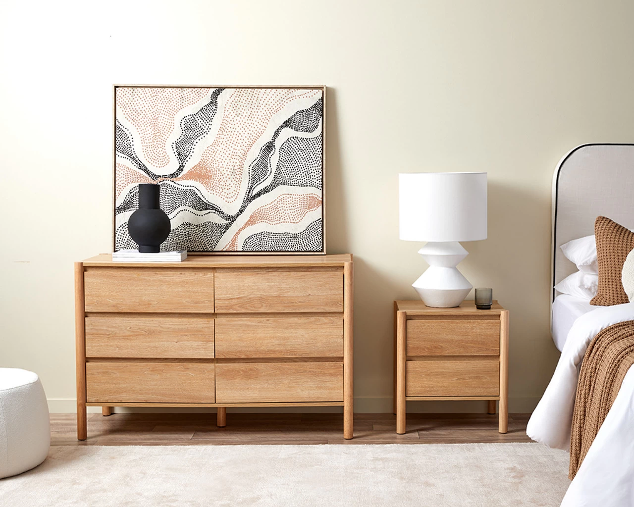 Give your bedroom a warm, inviting look with the Blair Bedside Table. Inspired by Japandi design, this side table has tubular legs, and clean lines with an all-natural wood tone finish. Its sleek and minimalist design adds simple elegance and maximises the available space beside your bed. The two sliding drawers provide ample storage for your night-time essentials, allowing you to keep your belongings organised and within easy reach. The perfect addition to any primary, guest or child’s bedroom, its all-natural wood tones pair easily with a range of styles like Modern, Coastal, Boho and everything in between. Offering unmatched value, it’s the perfect finishing touch for your dreamy bedroom space.