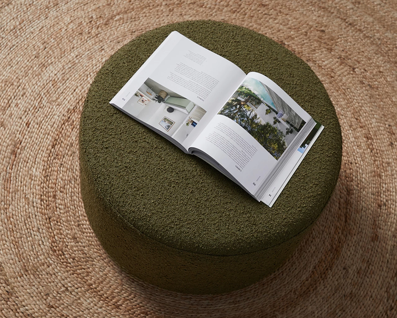 Add cosy style to your home with the Boucle Ottoman Large – Khaki. With a wide, round design, this green boucle ottoman is the perfect centrepiece in a room and looks gorgeous from all angles. Ideal as a spot to put your feet up, as an extra seat or a stylish alternative to a coffee table. We love the boucle fabric with its perfect balance between rugged, lived-in style and soft to the touch texture. And available in a stunning khaki green colourway, it gives any room statement style all year round.