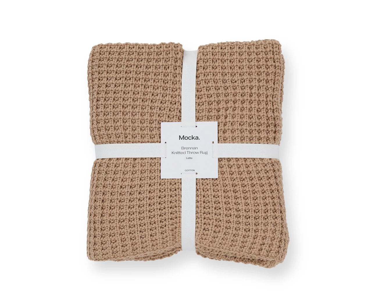 Add stylish, snuggly vibes to your living spaces with the Brennan Knit Throw Rug – Latte. Made from a 100% cotton with a thick, knit weave texture, it’s a stylish rug to keep you warm and cosy. The latte colour is a versatile neutral to layer your home in a warm style. And with a 150cm x 125cm size, use it to add a layer of softness to your bed or on the sofa. It’s the perfect way to create a seriously comfy spot to relax in, whether you’re unwinding with a good book or catching up on your favourite TV series. Match back with the rest of the Brennan range for a stylish tonal look.