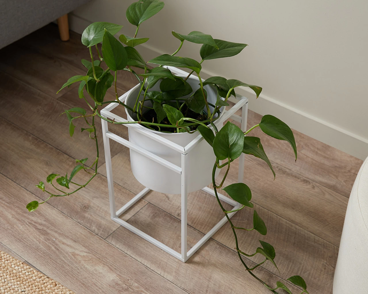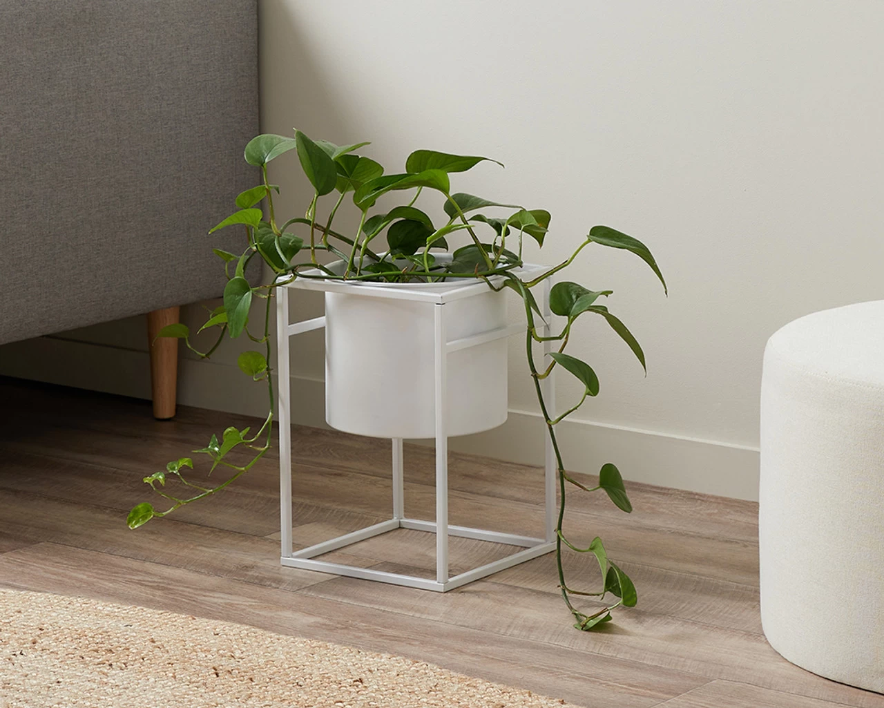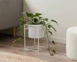 The Brent Metal Plant Stand White – Short adds minimal, urban style and lush greenery to your living spaces. This short plant stand has an all-in-one design, complete with inbuilt iron pot and matching square, iron stand.