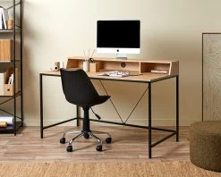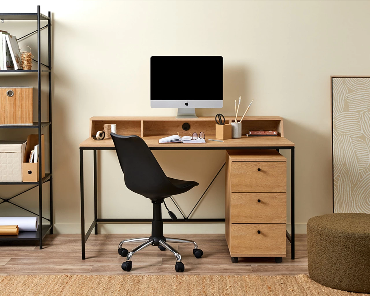 The Brixton Desk is a stylish and functional desk for your home office. It has a generous desktop with ample working space for completing your to-do list. With three cubby holes, it’s easy to organise paperwork and supplies and keep everything accessible. The centre cubby also includes a hole for your computer cords, so you can keep your desk looking neat and tidy (and free from unruly cords). The natural finish and black metal legs are perfect for creating a minimalistic and modern home office. Whether you’re working-from-home, running your own side hustle or just need a home office set up, this desk will make your space functional and flexible to your needs. Pair with the rest of the Brixton range for a full office set up.