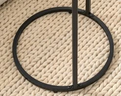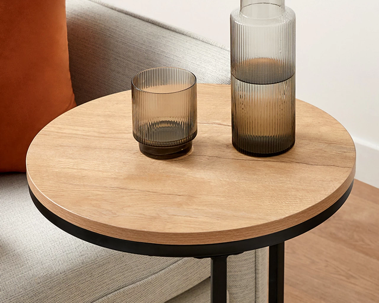 The Brixton Side Table – Round is a functional round side table with a whole lot of style. Perfect for any modern living space or bedroom, this side table has a chic powder-coated black metal frame and an almost rustic-look, natural finish tabletop. A little bit minimalist and a little bit modern, the open base gives a spacious, airy feel to the overall design – perfect for smaller rooms. Whether it’s next to an occasional chair, armchair, sofa, or bed, it’s the perfect-sized side table for décor, a lamp, and a cuppa.