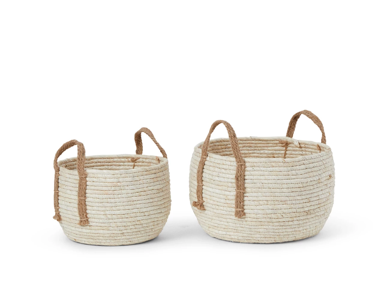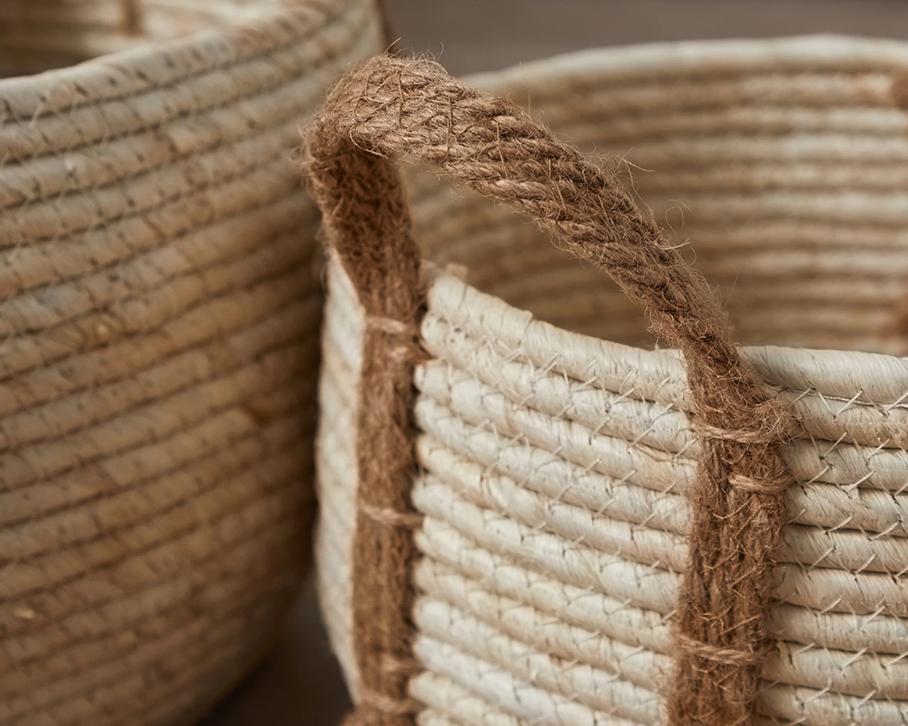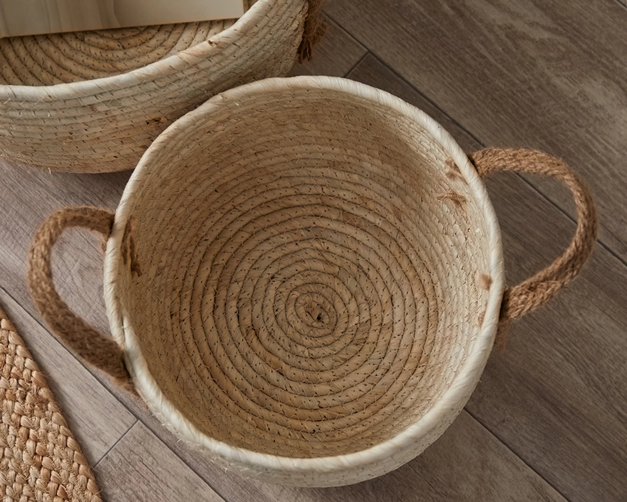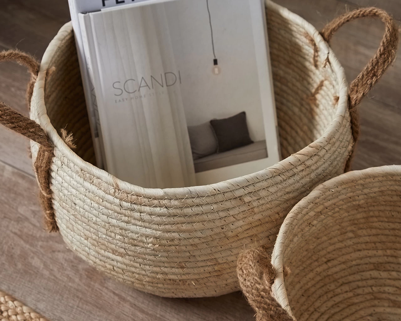 Add rustic, natural style to your home with the Cancun Basket – Set of 2. Made from corn leaf, they’re durable and have a chic woven rope style. Super stylish, they’re the perfect way to add texture into a room and have a wide, round shape for versatile storage options. Perfect for use to store kid’s soft toys, dog leads, blankets, and other household essentials. Available as a set of two, you have slightly different sizes on offer ensuring you have a basket to suit any storage need or space size. It’s organic, rustic feel complements your space whether it’s traditional, Hampton’s, Scandinavian-inspired or somewhere in between. Style together as a pair or separately.