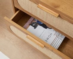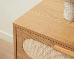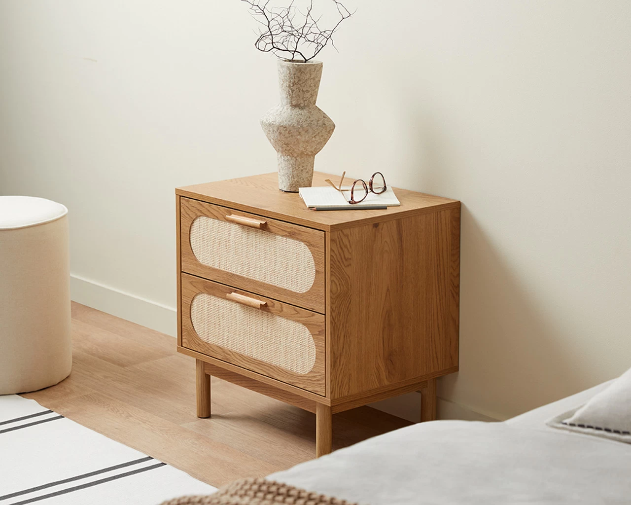 The gorgeous Canyon Two Drawer Bedside Table will add a touch of natural beauty to your bedroom. With a natural rattan design, it adds a warm, organic feel to any room, while the intricate weave pattern adds a touch of boho-chic style. Its unique design features two drawers, providing ample storage space for all your bedtime essentials. The perfect size to fit beside your bed, it’s not only functional, but a beautiful statement piece that will elevate your decor. It’s compact size also means it’s a great option as a side table beside a lounge or armchair.