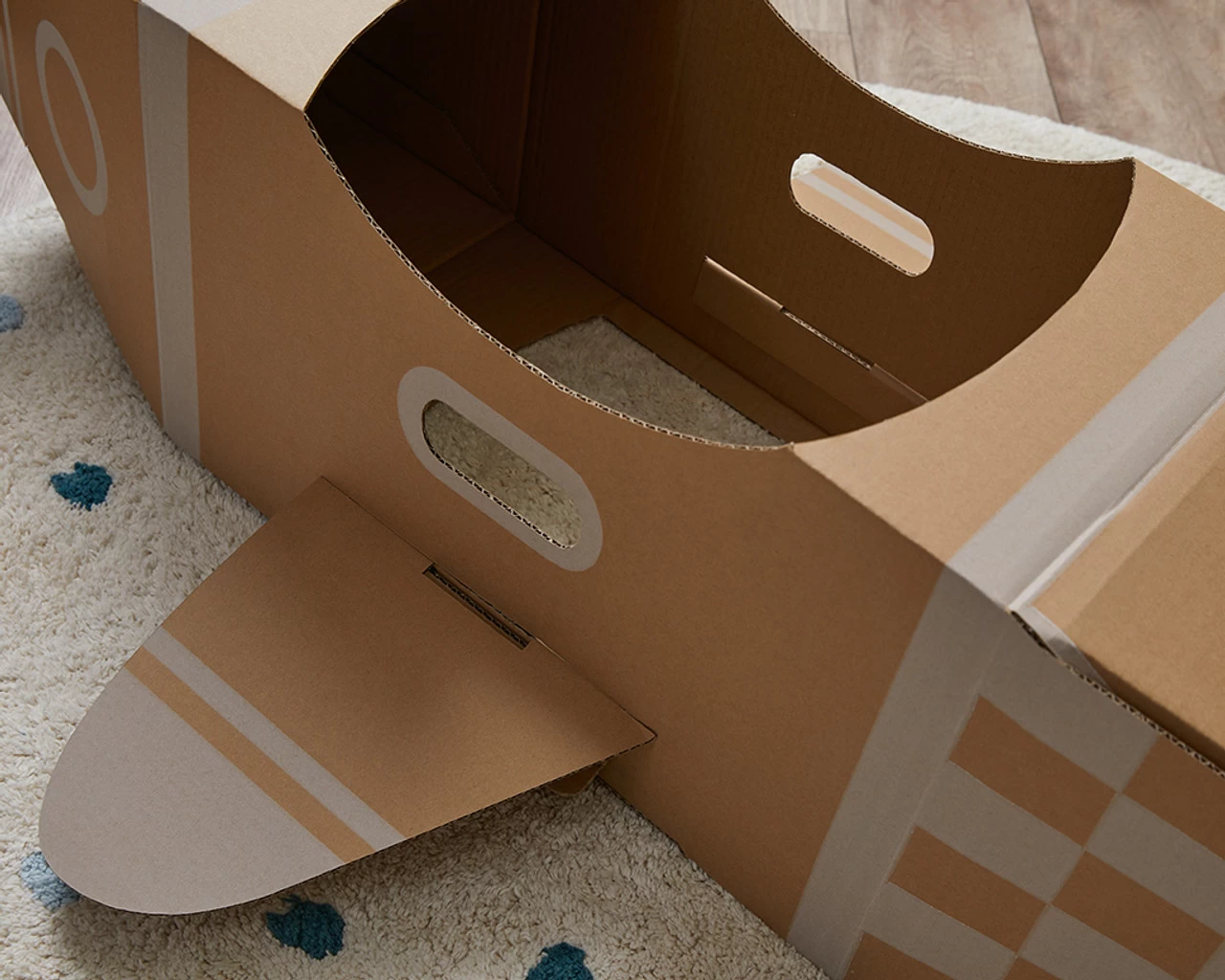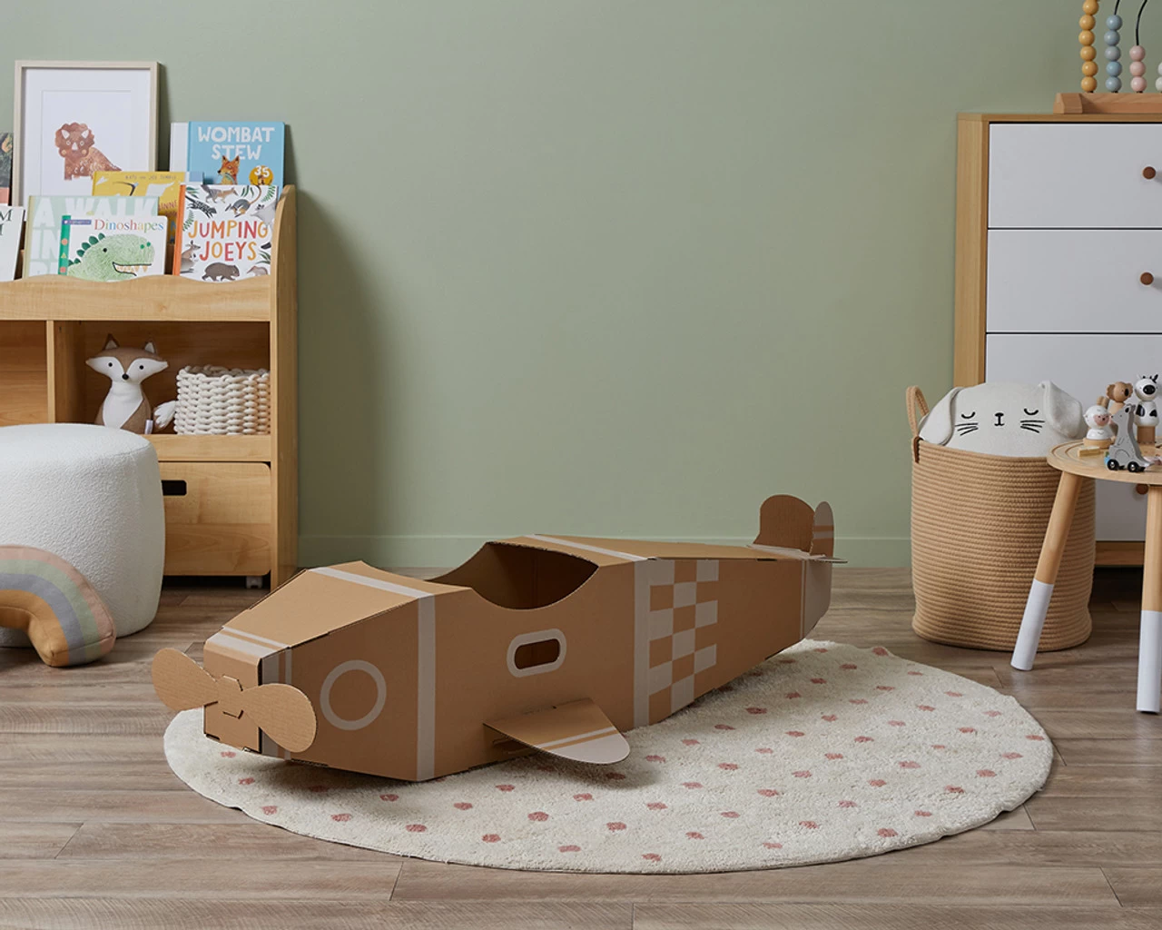 Give your kids a unique and fun outlet with the Cardboard Art Plane. Designed to ignite your childās imagination, this cardboard plane is perfect for make-believe and creative expression. The perfect go-to for rainy days, childrenās birthday parties, school holidays or just a regular Sunday. Whip out the stickers, crayons, pencils, or paints and your child will have so much fun decorating their own airplane. The middle opening and convenient handholds on the sides means kids can pop in the captainās seat before ātaking-to-the-skiesā.Ā And donāt fret, thereās no need to be an origami expert to set this cardboard airplane up – just pop the tabs together and youāre ready to go.