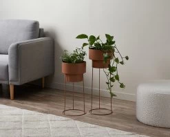 The Constance Metal Plant Stand Terracotta Tall makes an earthy decor element out of your houseplants. With an all-in-one design, this tall plant holder comes with a pot and stand so all you need to do is pop in your fave plant. Featuring a terracotta design, this classic colourway adds warm, earthy accents to complement your spaces. The tall design will keep your plants safe from nibbling pets or curious kiddos, while positioning your plant to catch the best sunlight. Our favourite way to style plant stands is together – grab them in different shapes and sizes and group together for a gorgeous display of greenery.