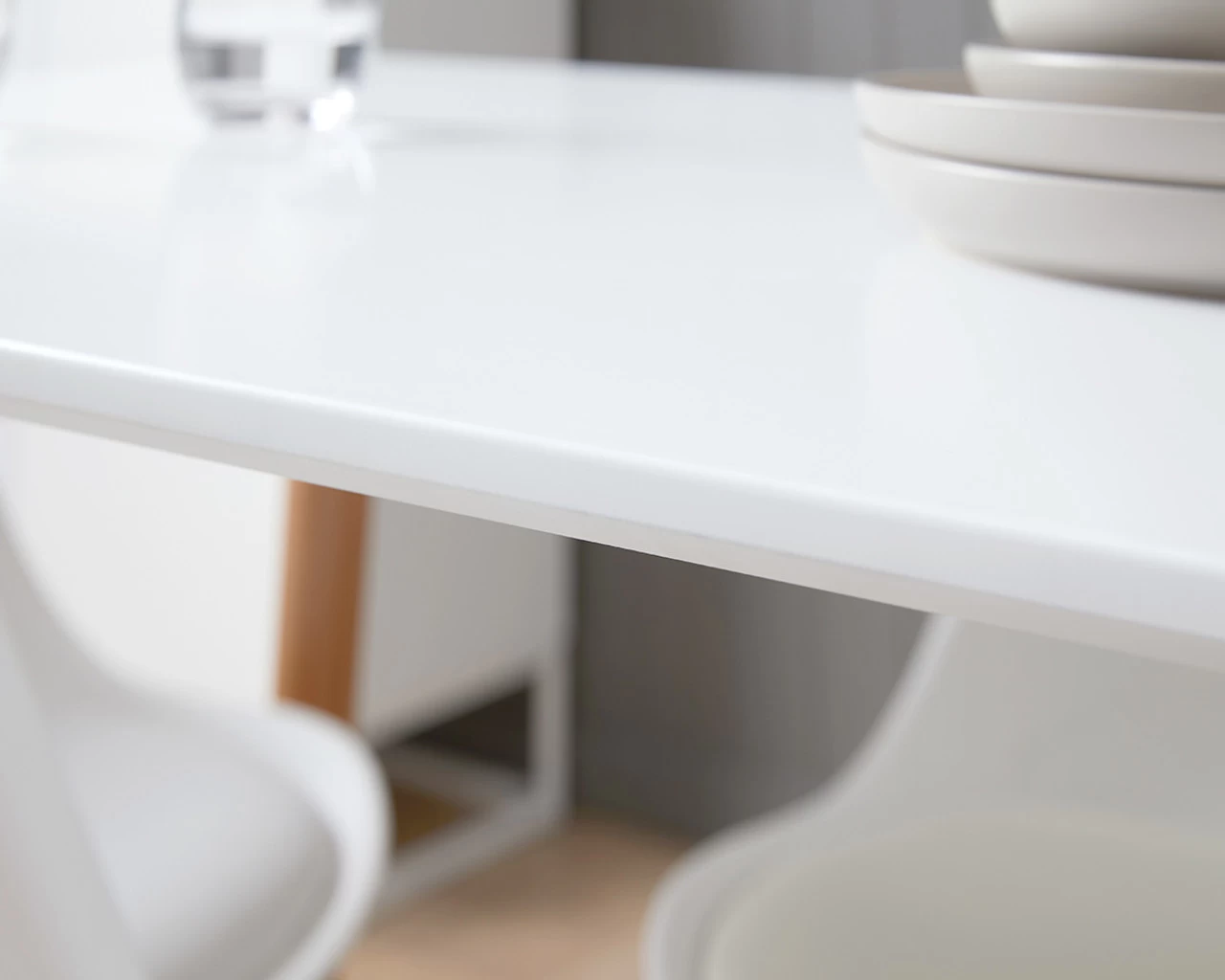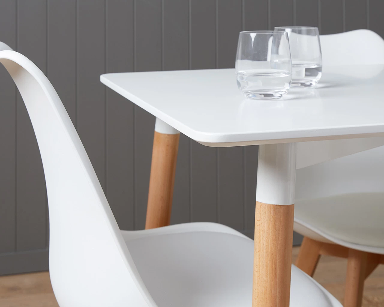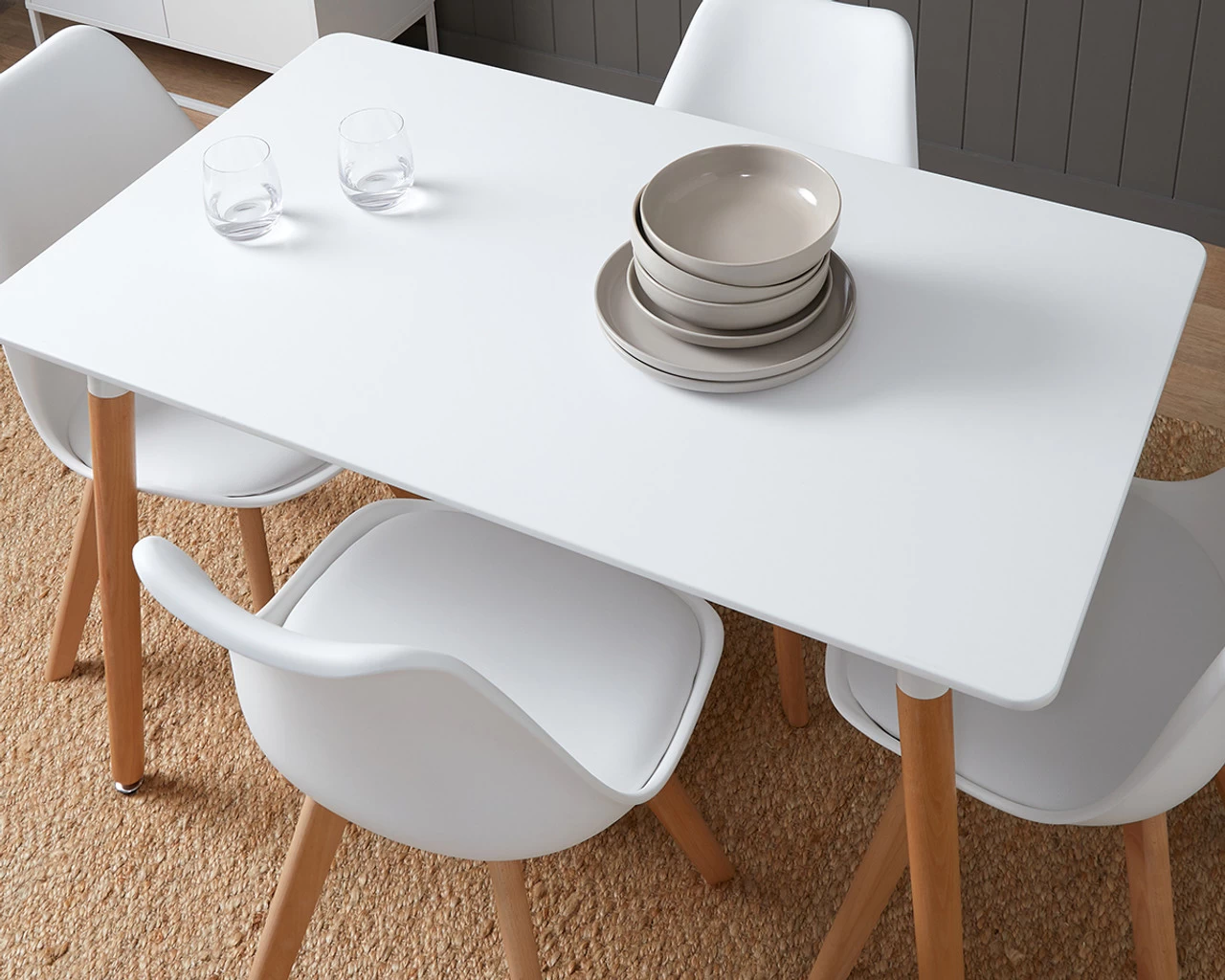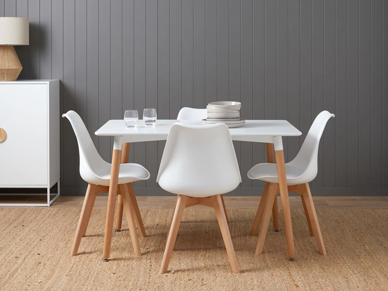 Designed with affordability and style in mind, the Contemporary 4 Seater Dining Table – White is a stunning addition to your modern home. This gorgeous dining table is 120cm long, so you can comfortably fit 4 people around it. It’s the perfect table to enjoy family meals, and intimate dinners or gather around with friends for a games night. The white finish tabletop is bright and fresh and is perfectly paired with the solid beech wood legs for a look that’ll instantly uplift any space. A fantastic size for apartments and houses alike, you can create a stylish dining space at a fraction of the cost.