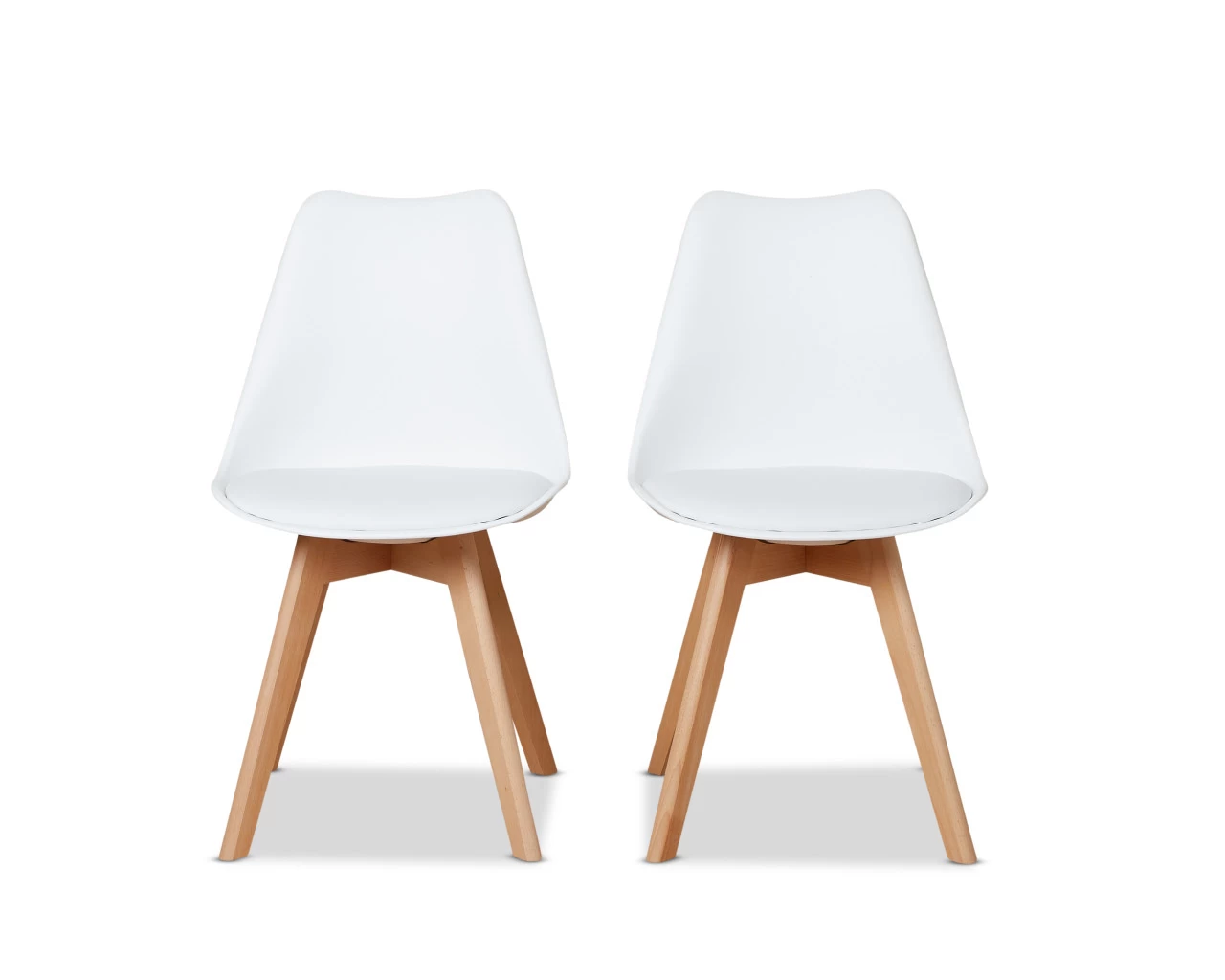The perfect combo of style and affordability, the Contemporary Dining Chairs Set of 2 – White is a must-have for your dining space. Featuring an on-trend curved design, these chairs are sleek, modern, and oh-so-comfortable. Providing ample support and comfort as you sit, they’re the ultimate all-rounder for everyday family dinners or long, leisurely dinner parties with friends. The solid beech wood legs add a touch of natural elegance and give the chairs a sturdy base, so you always feel secure. The bright white colourway is the perfect neutral to add a touch of freshness to your interior decor. Paired with the Contemporary Dining Table, it’s an affordable way to style your dining space.
