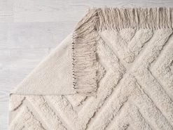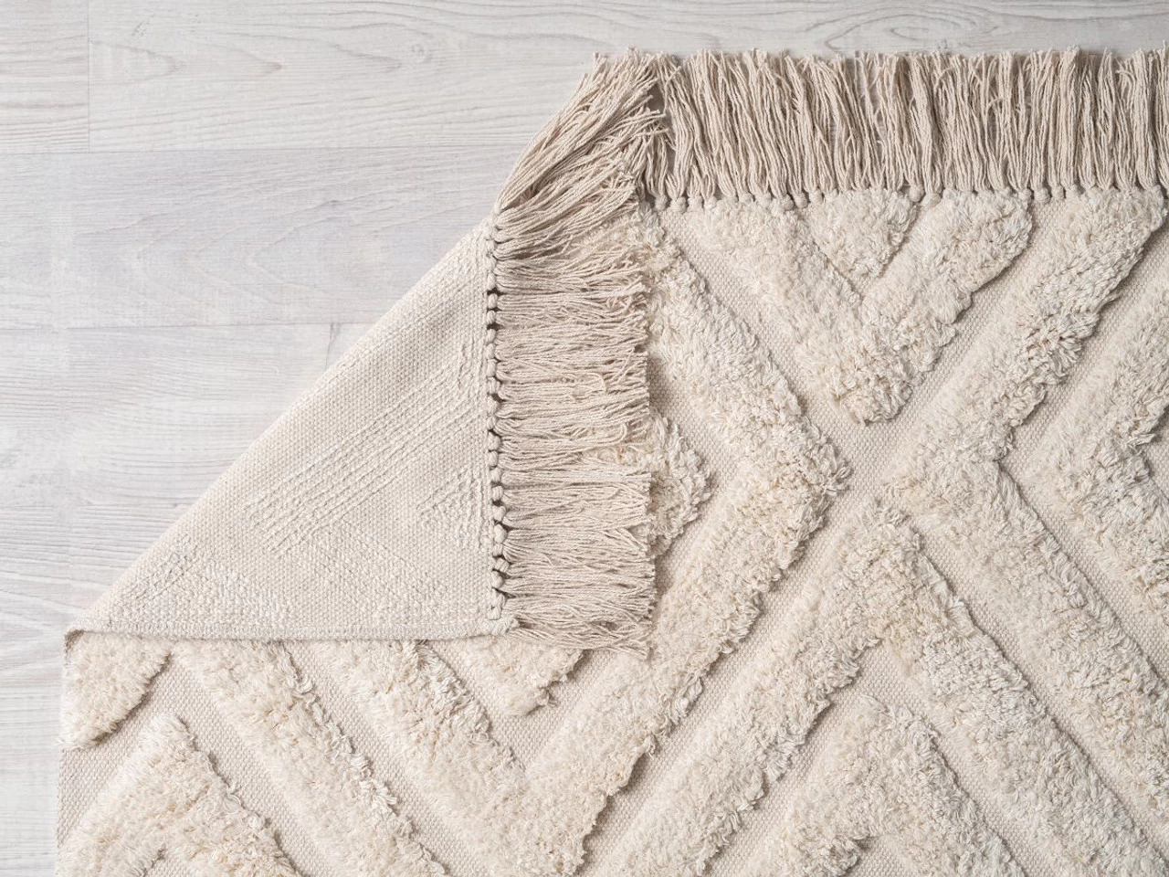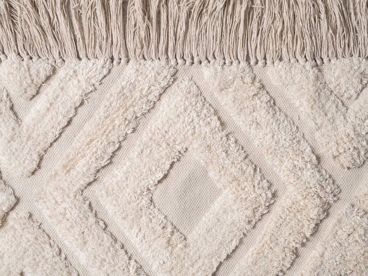 Inject new life into any room with the Dajana Floor Rug – Large. Handloomed from cotton, this large plush pile area rug features a tufted, diamond pattern and tassel edging to add chic, elegant style to a room. With a wonderfully soft feel underfoot, this neutral rug will instantly make any space feel warm and inviting.