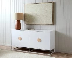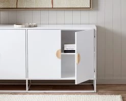 The Eclipse Buffet – White adds cosy, yet contemporary style to your home. Wonderfully modern with its sleek, straight lines, it embraces on-trend curves with the round rubberwood handles for a statement feature. The fresh white colourway brightens any space and is an effortlessly stylish addition to a dining room, living space or office. Offering multiple storage options, its dual cupboards have internal shelving so no matter what you need to store, you’ll have a space for it. Style the surface with décor and match back with the rest of the Eclipse range for more modern contemporary style throughout your home.