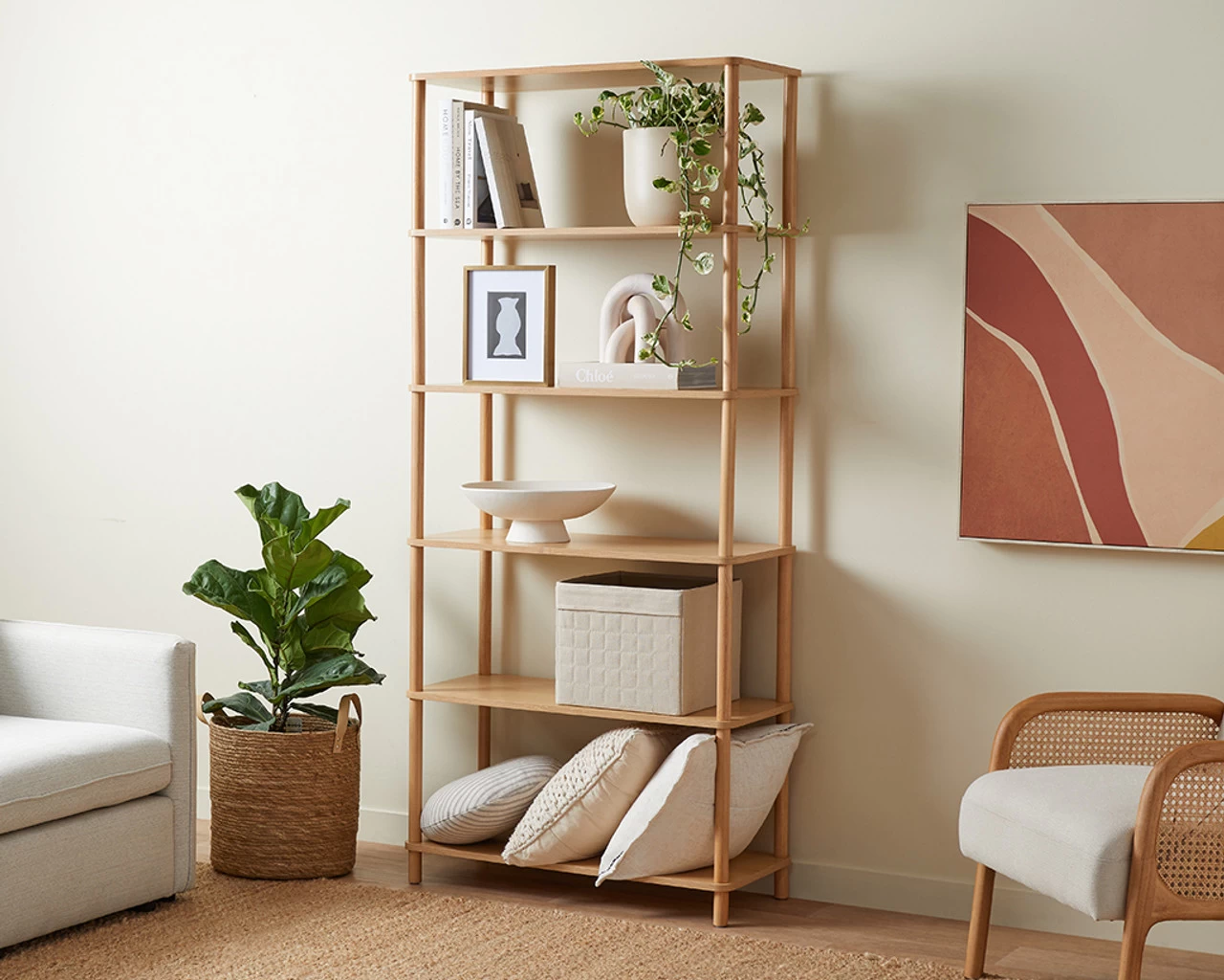 • All-natural shelving with an on-trend tubular shape