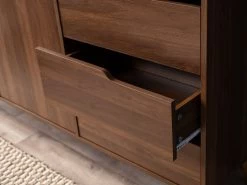 Create a home with vibrant style and useful storage with the Edmond Buffet. Well-constructed, this sideboard has a sturdy, reliable design with strong legs and a modern, handless design. Featuring three sliding drawers and two cupboards with internal shelving, you can enjoy all-purpose storage with ease.