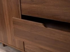 The Edmond Buffet is a mid-century inspired cabinet to add to your home. With a timeless, wooden style, this buffet cabinet creates a statement in a dining room, living room, home office and more. Perfect for storing plates, spare vases, and even your favourite board games, this cabinet has both drawer and cupboard space for versatile storage you can use. We love the dark walnut frame which has a stained wood look and adds a richness to any interior.