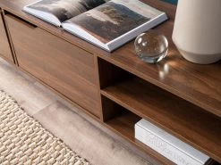Create your ultimate home entertainment space with the Edmond Entertainment Unit. This 160cm TV cabinet has a sturdy, reliable design with strong legs and a modern, handless design. Featuring two open shelves, they are perfect for your entertainment devices like a gaming console, streaming device, or DVD player. A hole in the back allows cords to access the power supply, while ensuring they don’t take over your living room. The two wide cupboards include internal shelving, so have versatile closed storage for all your home entertainment needs.