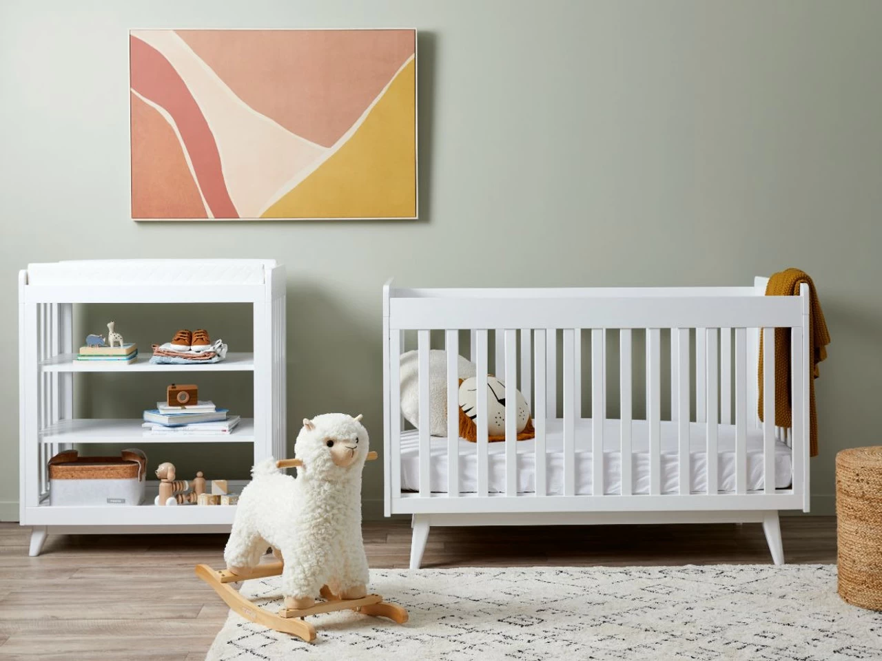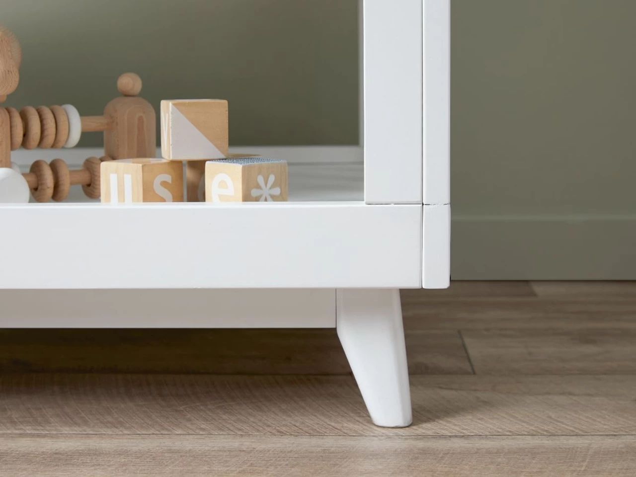 The Elias Change Table – White offers the best mix of modern style with mid-century design. Designed to be both practical and stylish, you’ll be able to create a stunning station to change your babies’ nappies. This handy change table features a wide tray on top with three open shelves underneath for all the essential storage you’ll need – like nappies, wipes, and clothes. We love the bright white colour of this change table for a gender-neutral style you’ll adore in your nursery. Pair with our Elias Cot – White for a complete nursery collection.