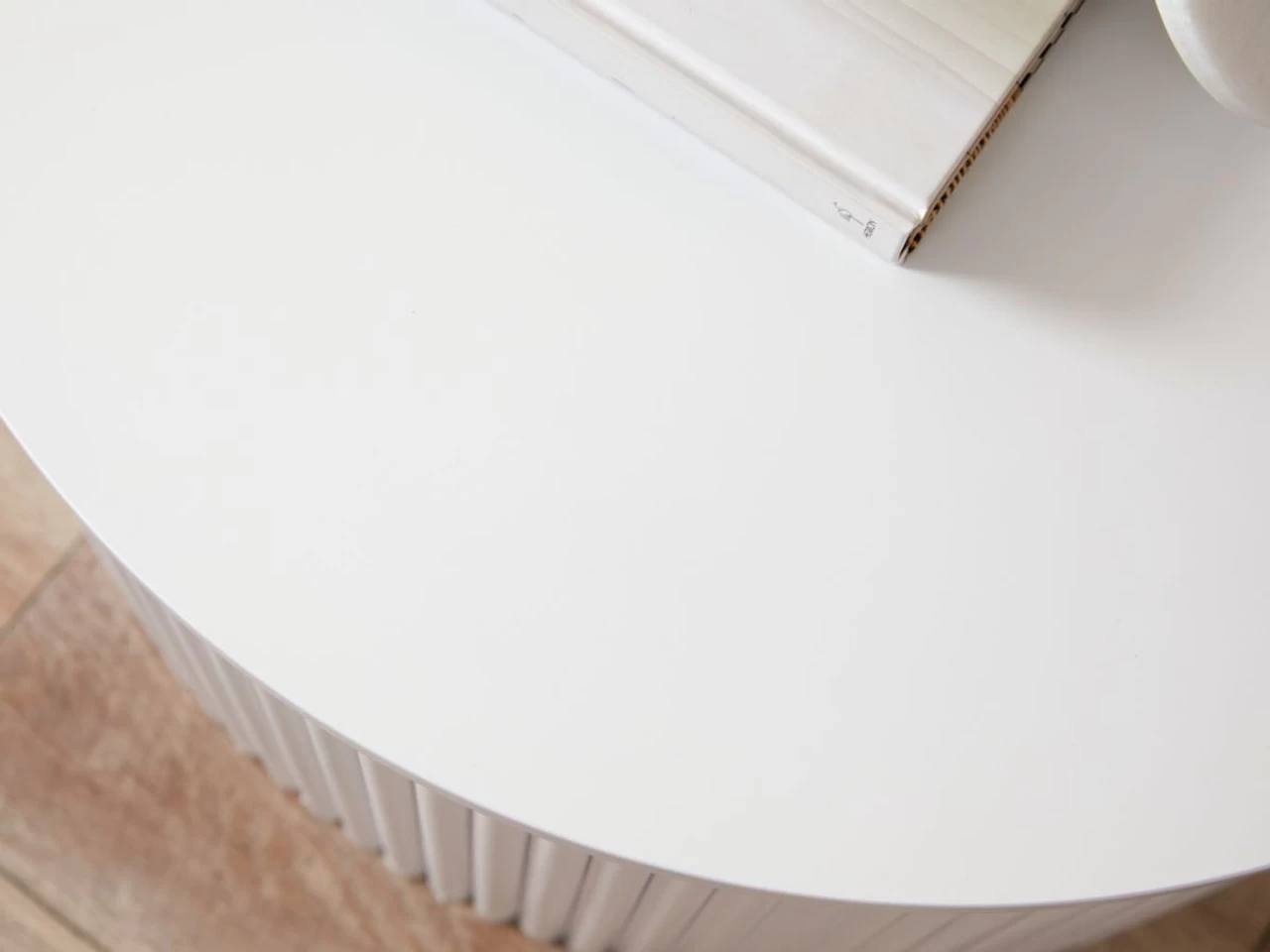 Our Eve Drum Side Table – White is a stunning, designer- style side table to add to your home. Featuring a statement drum shape with a fluted, column-esque base, this side table has a chic, textured style you’ll adore. Perfect for the living room, bedroom, entryway, or other space in your home, the round tabletop is the perfect surface for a lamp or styling décor.