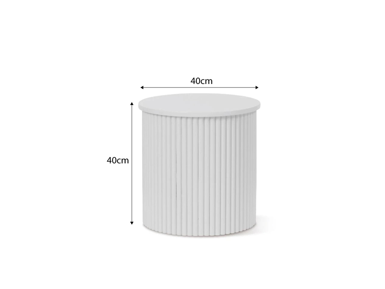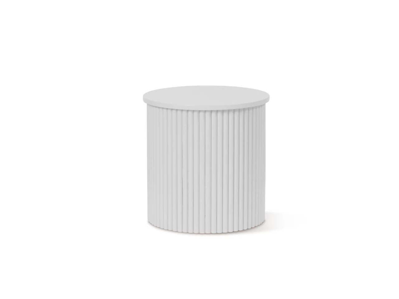 Add style to your home with the Eve Drum Side Table – White. With on-trend style, this drum shaped coffee table has a fluted, “drum” design and is a great way to add textural interest into a room. Available in three different colours, choose between grey, white, and barely pink painted finishes for a look that will elevate your home.