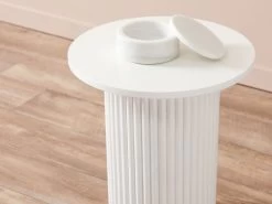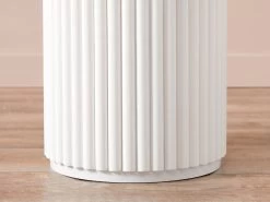 Add elevated, modern style to your home with the Eve Side Table – White. This round side table features a statement shape with a fluted, column base that adds texture and style into a living room or bedroom. The round tabletop is flat and smooth, providing good space for a lamp or to display plants and décor.