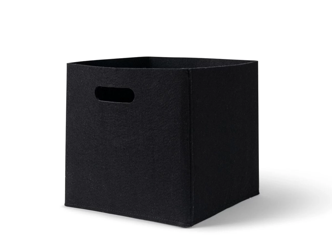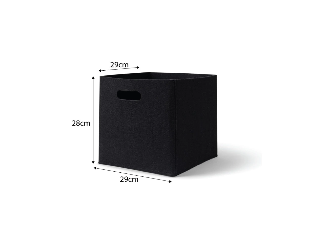 The Felt Cube Basket – Black pairs modern style with a durable felt finish to create a practical felt basket with a whole lot of style. At 28cm high x 29cm wide x 29cm deep, this basket is perfectly sized to fit our Essentials Cube Units. However, they are also free-standing so can be used separately. The natural felt body and open slot handle gives these baskets a simple but super-cool look and will reinvent any study nook or kids bedroom/playroom. Keep toys, homework, stationery and games tidy and out-of-sight while adding a stylish element to a room. The soft baskets are easy to use for children as well and are designed to last no matter how rough little ones may be in their haste to get to their favourite toy.