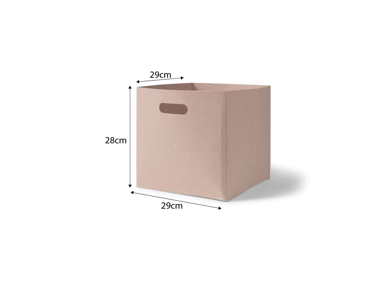 The Felt Cube Basket – Natural pairs modern style with a durable felt finish to create a practical felt basket with a whole lot of style. At 28cm high x 29cm wide x 29cm deep, this basket is perfectly sized to fit our Essentials Cube Units. However, they are also free-standing so can be used separately. The natural felt body and open slot handle gives these baskets a simple but super-cool look and will reinvent any study nook or kids bedroom/playroom. Keep toys, homework, stationery and games tidy and out-of-sight while adding a stylish element to a room. The soft baskets are easy to use for children as well and are designed to last no matter how rough little ones may be in their haste to get to their favourite toy.