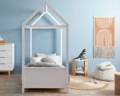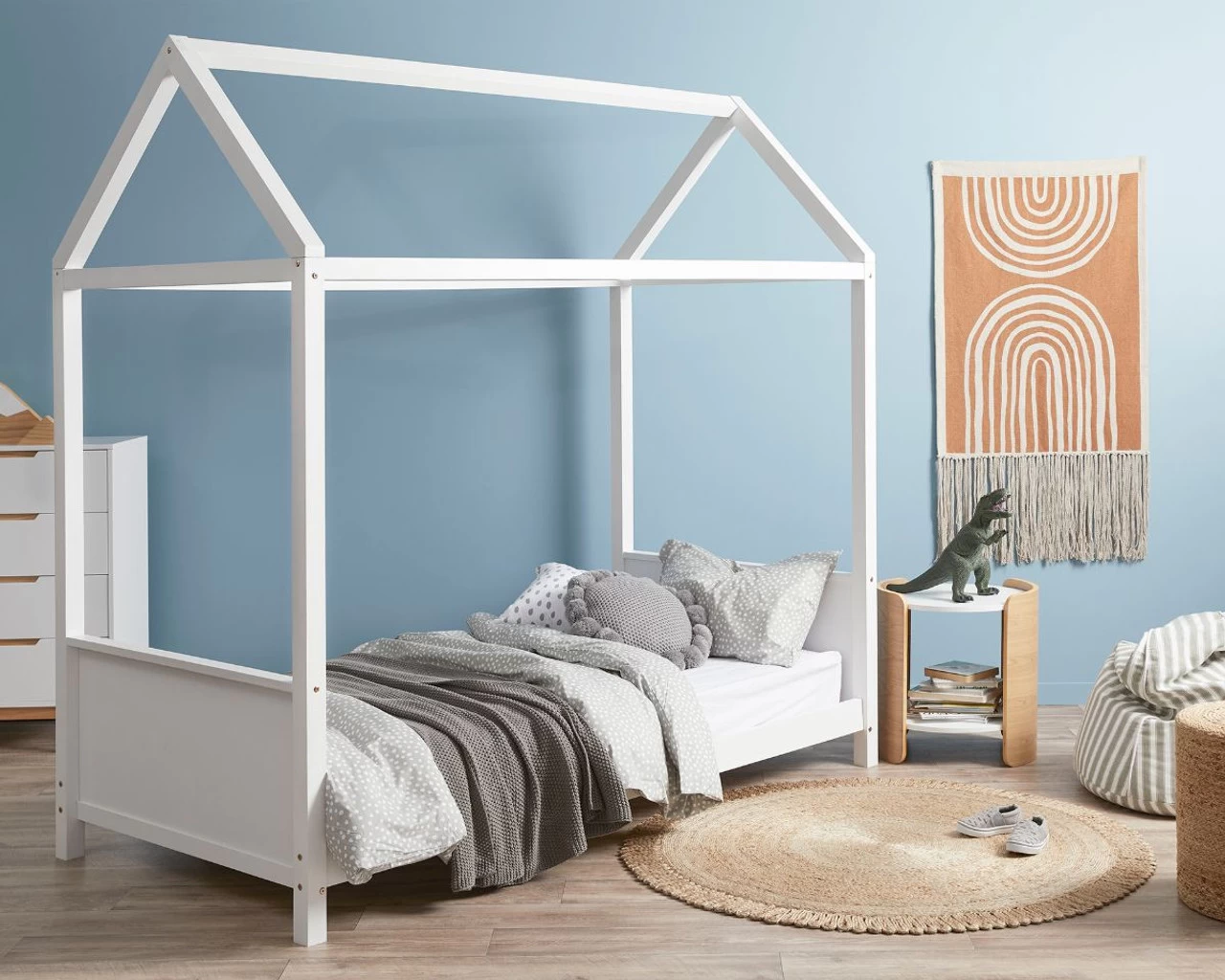 Complete this bed by adding our Vale Single Mattress and explore our assorted kids single sheet sets and quilt cover sets. With these options, you’ll be able to create a bedding look that is a comfortable as it is stylish. Make your child’s bed as warm and cosy as home with the Finn Kids House Bed.