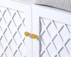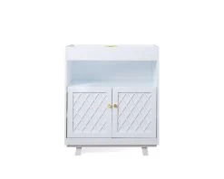 The Genevieve Change Table is the ultimate nursery piece to create a serene sanctuary for your baby. With vintage-inspired lattice cross hatching on the cupboard doors and round gold handles, it has a timeless chic design. The soothing white colourway is carefully curated to promote calm and tranquillity while changing your babies’ nappies.