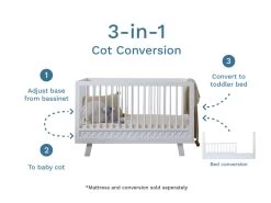 The Genevieve Cot has a timeless design that’ll make your baby’s nursery feel like a true sanctuary. With this cot, it’s all in the details like the decorative lattice trim and spindles on the sides that’s reflective of traditional wood workmanship. Designed to create a sanctuary of calm in your nursery, this cot has a soft white colourway and a mix of textures to promote relaxation and sleep. With fixed sides it provides maximum safety, while the open slats offer good airflow and visibility. The cot also features an adjustable mattress base with two settings (including a newborn setting), allowing you to raise or lower it as your baby grows. So, whether you’re designing a nursery from scratch or simply updating your little one’s sleep space, the Genevieve Cot is a timeless addition.