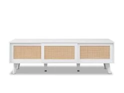 The Georgia Entertainment Unit – Large is a coastal inspired, rattan TV unit and will add light and bright style to your home. With a painted white finish, this TV unit makes your home feel spacious and showcases the natural, organic beauty of the weaved rattan panels inlaid in the cupboard doors. This touch of natural texture brings the outdoors inside for more warm and cosy living spaces.