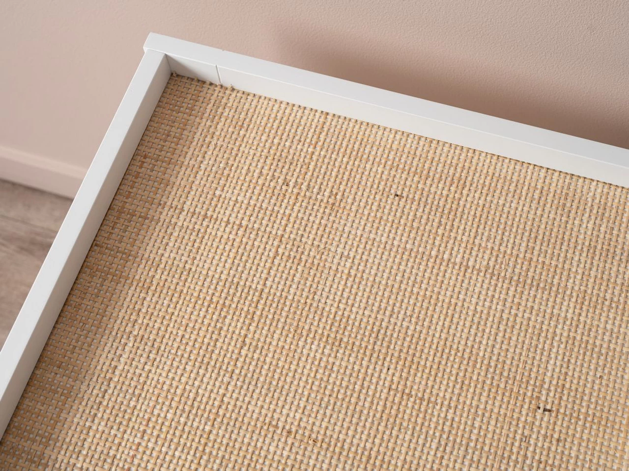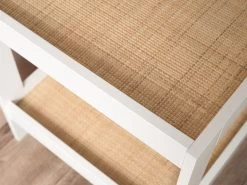 With a painted white finish, this side table has a light and bright style to make your home feel spacious and showcases the natural, organic beauty of the weaved rattan panels on the shelves. This touch of natural texture brings the outdoors inside for more warm and cosy living spaces to relax in.