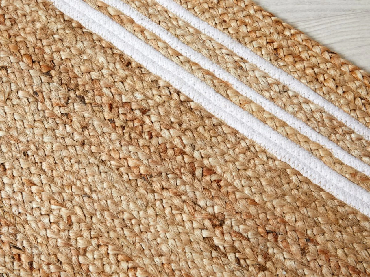 We love the natural jute that is handwoven in a stunning braided style and features a decorative white cotton bordering. With a laid-back style and raw, organic feel this handwoven jute rug adds texture and shape to any space. If you love this look, be sure to check out the rest of the Halcyon range for more jute rugs in different sizes. Add stunning, jute style to your living spaces with the Halcyon Jute Rug – Large.