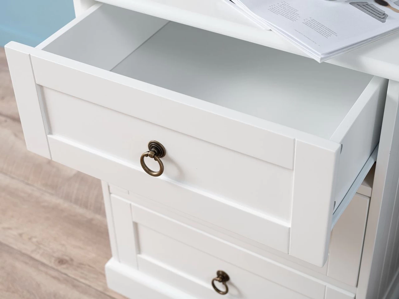 Add the elegance of the Hamptons to your home with the Hamptons Bedside Table. Featuring three sliding drawers, you’ll have ample space for everything you need, so you can keep rooms tidy and clutter-free. The surface is perfect for your latest read, a charging device, a glowing lamp or decor. With this Hamptons style bedside table, you’ll be able to make your bedroom suit your needs.