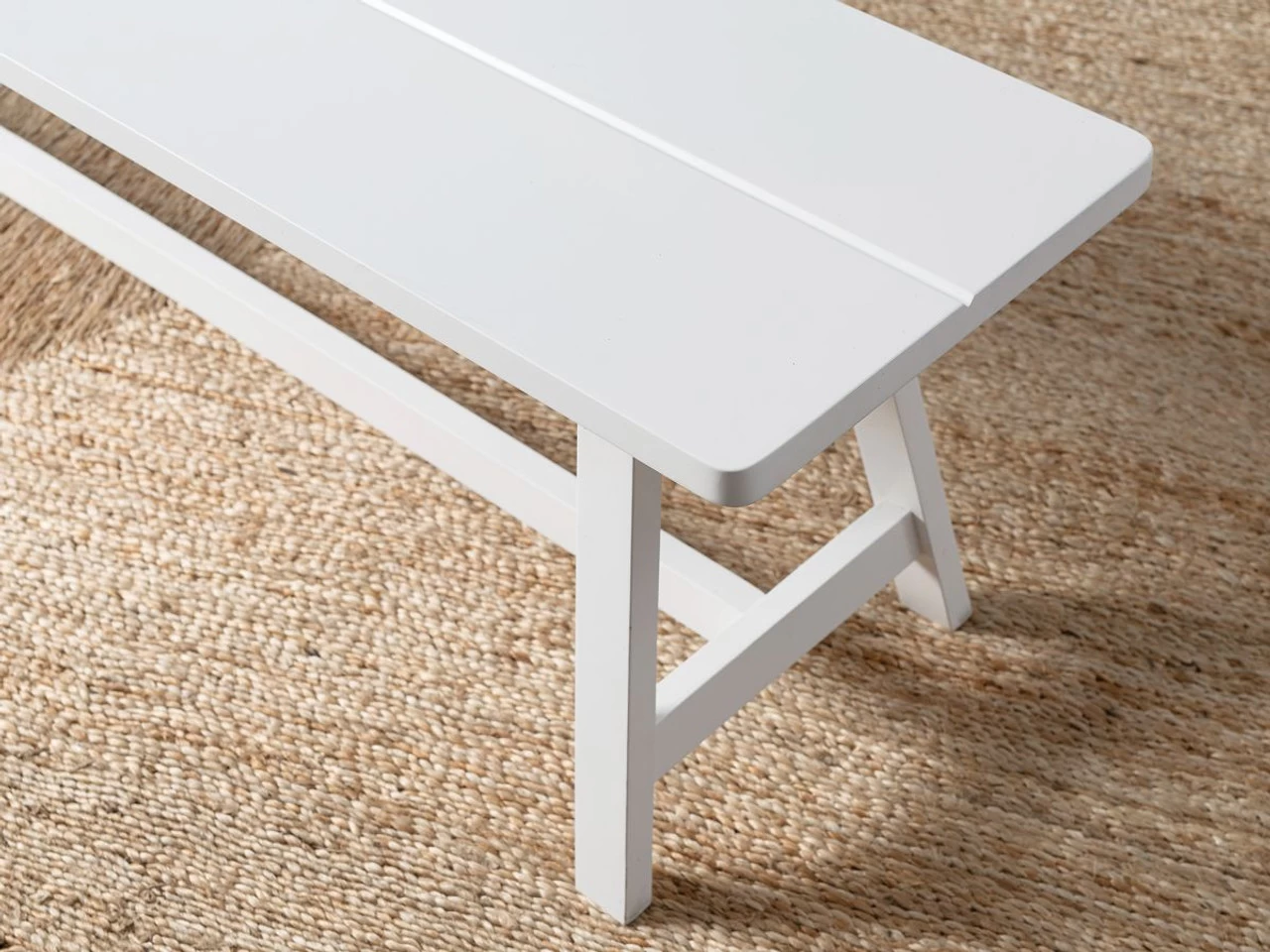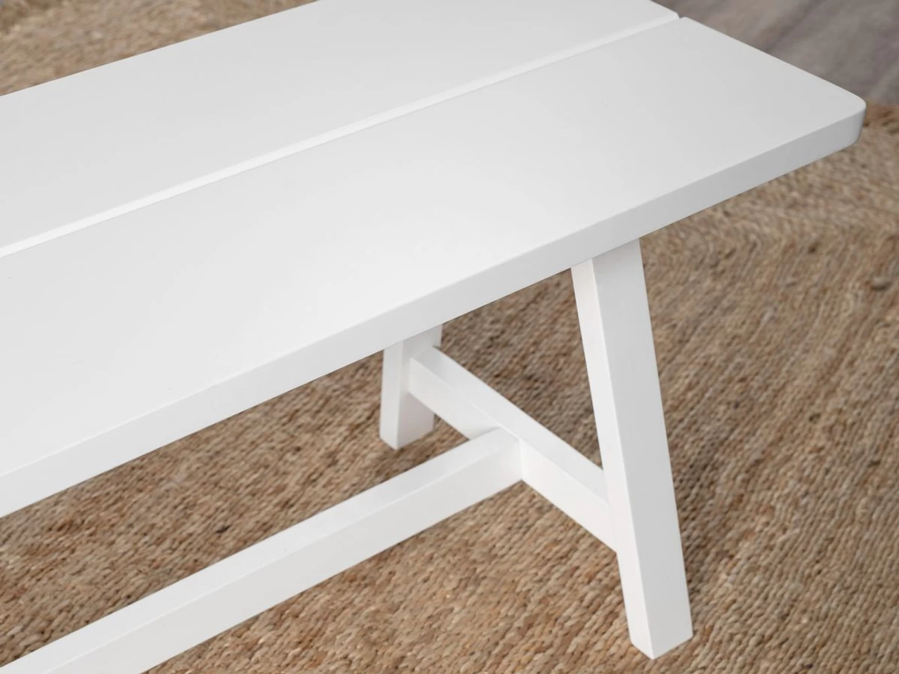 The Hamptons Bench Seat is a timeless indoor bench with chic, Hamptons style. Perfect for use as a bench seat at a dining room setting, or as a bench seat in an entryway, hallway, bedroom and more, you’ll love the elegant style and easy practicality this bench chair provides in your home. Featuring a wooden slatted look seat and classic shape of the legs, this is essential Hamptons style. The 180cm length is the perfect size to use throughout your home and will provide plenty of seating at your dining table for the whole family. We love the simple white finish for a look that is classic and sophisticated so you can style your Hamptons home with ease.