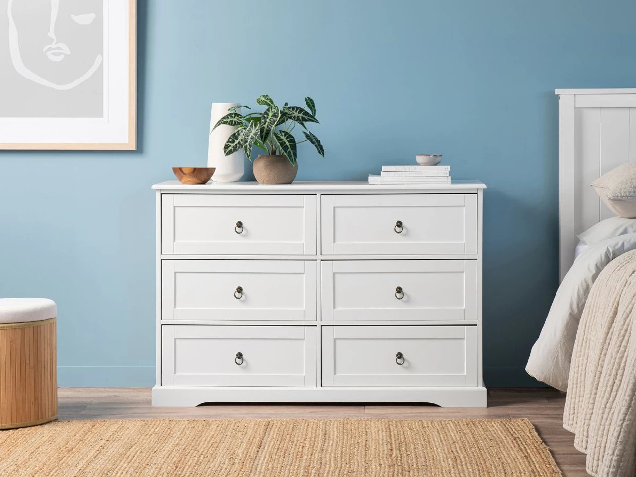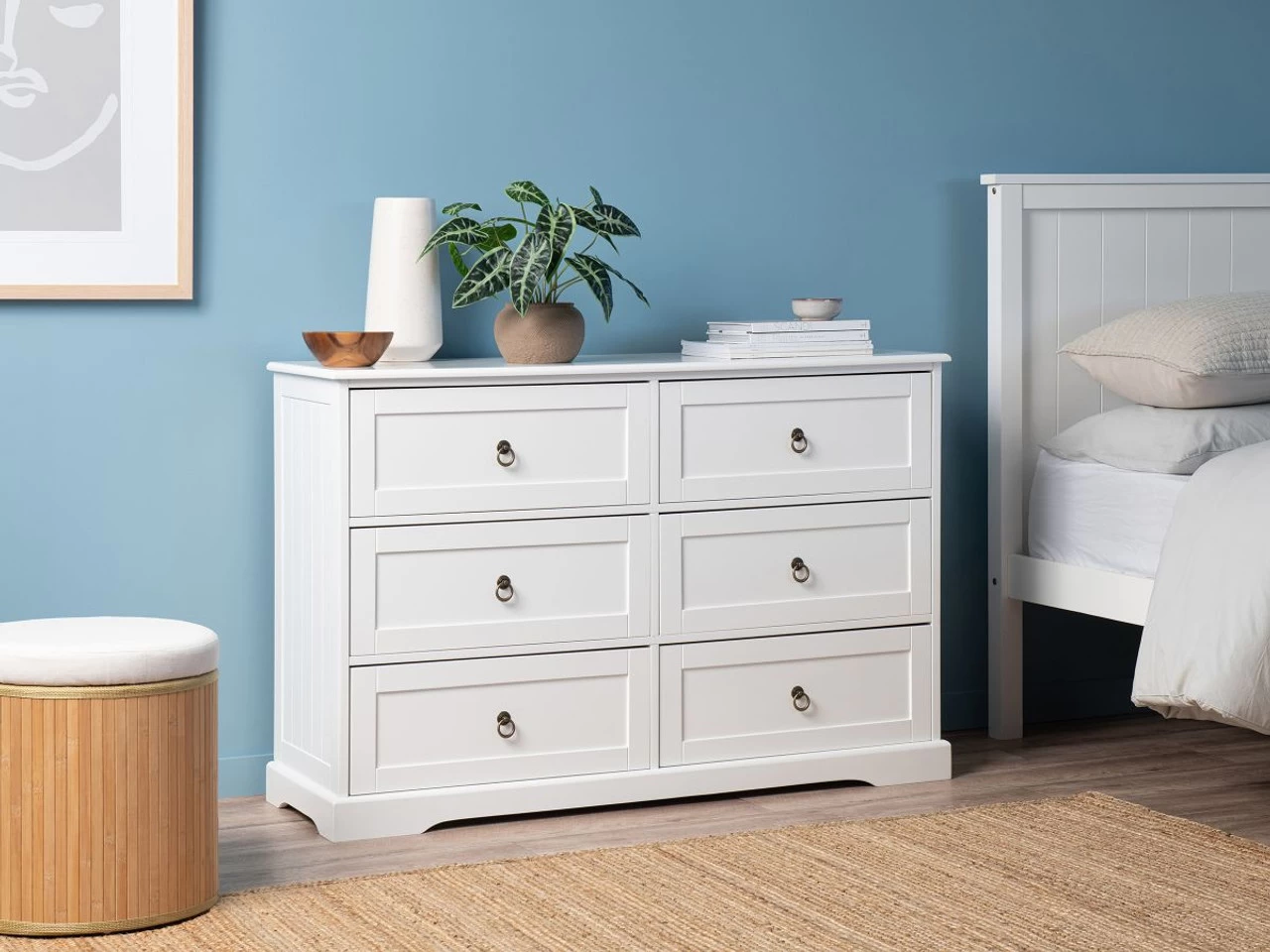 Create a simply classic, Hamptons bedroom with our Hamptons Six Drawer – Wide. A chest of drawers will instantly transform the storage in any room. Combining the elegance of an heirloom dresser with modern stylings to keep it contemporary, this dresser is perfect for the master bedroom, a guest bedroom, or in a kids’ bedroom or nursery.