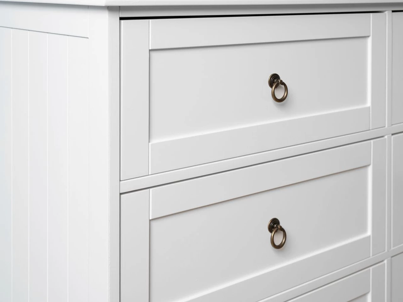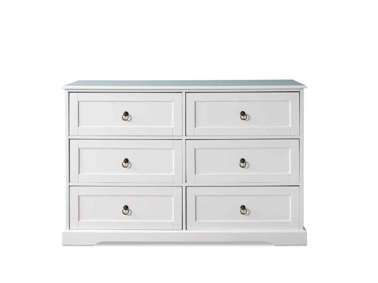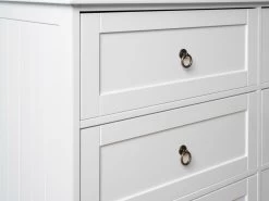 Create classic Hamptons style in your bedroom with the Hamptons Six Drawer – Wide. With an elegant shape and details, this chest of drawers offers all-purpose storage perfect for any master, guest or nursery. Featuring six, sliding drawers, this Hamptons style dresser is perfect for storing your clothes and other essentials. Available in a stunning white finish, accented with metal ring handles and VJ panelled sides, you’ll love the relaxed, elegance this unit brings to a room.